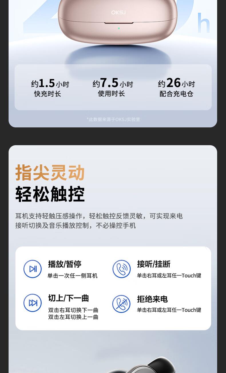 OKSJ耳夹式蓝牙耳机GT18京东自营销量2万+