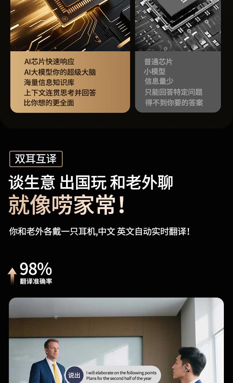 蓝牙版本:5.4 蓝牙芯片:AB5656C3(中科蓝讯)颜 色:黑色、玫瑰金 续航时间:单次充满使用5-6小时左右,充电仓电量可以给耳机充满2-3次左右。 待机时间:约200小时 防水等级:IPX5充电接口:TYPE-C接口电池容量:耳机:35mAh*2 耳机仓:300mAh 传输距离:10m(无障碍路段) 产品特点:智能Ai降噪功能,佩戴不痛耳朵,纽曼类似同款,带APP操作功能