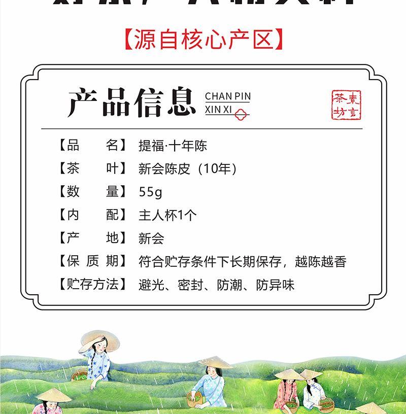 【原 料】陈皮十年 【净 重】55g 【产 地】新会 【内 配】主人杯1个