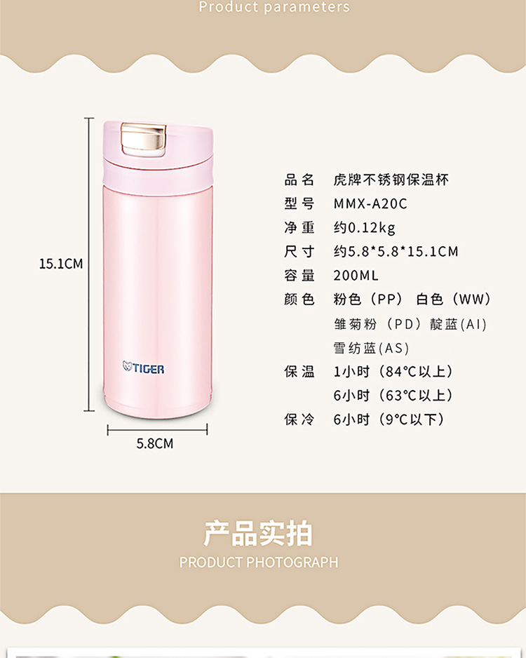 TIGER虎牌男女轻量时尚型保温杯MMX-A20C