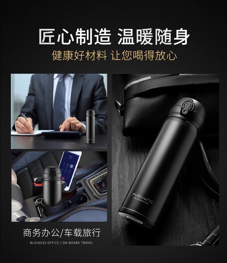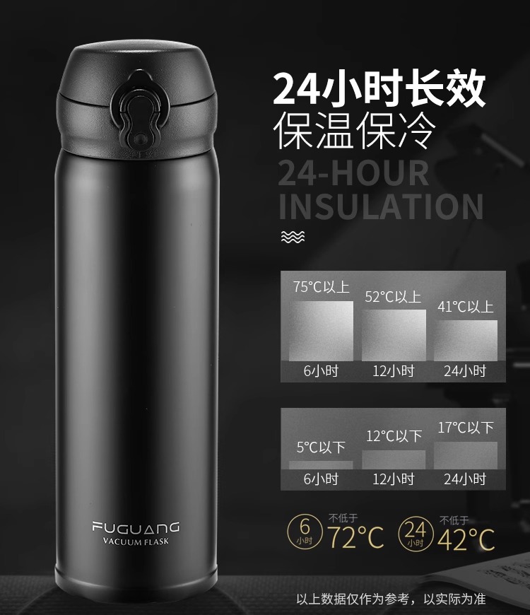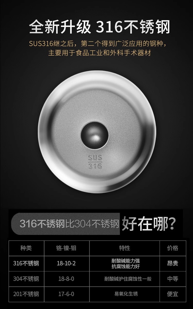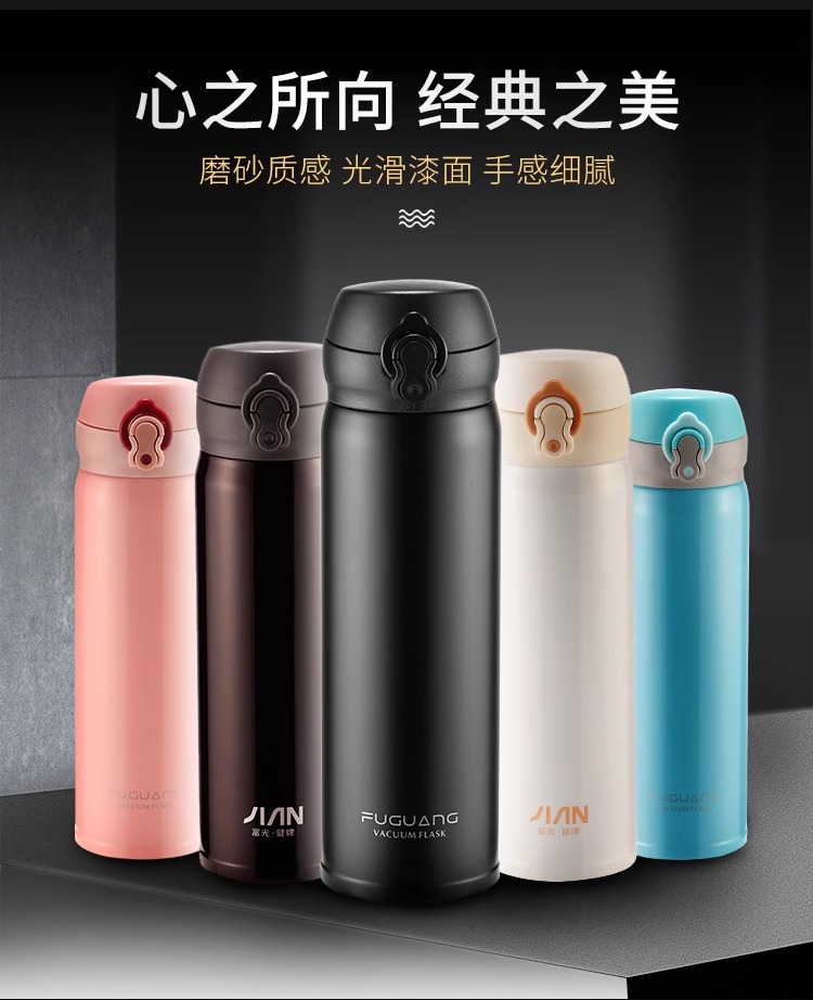 容量:500ml 尺寸:220mm*65mm 重量:215g 颜色:黑色,酒红色,粉色,蓝色,白色(纯色) 材质:316不锈钢内胆,双层不锈钢无尾抽真空 包装:单瓦盒