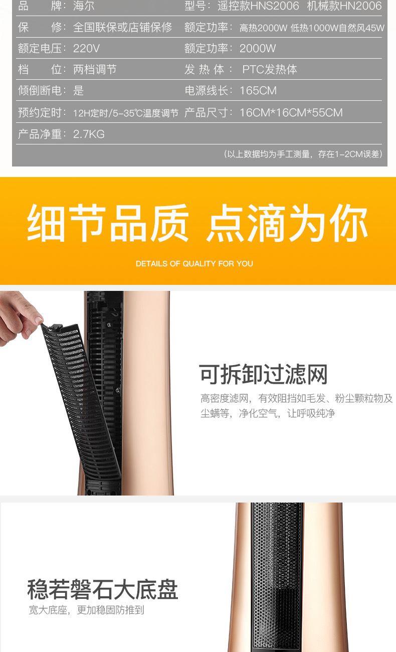 海尔立式电暖气节能省电速热暖器商用HNS2006遥控版