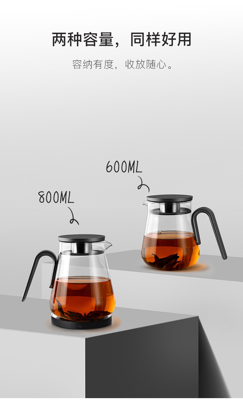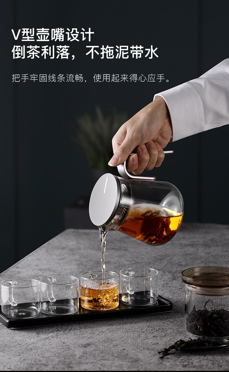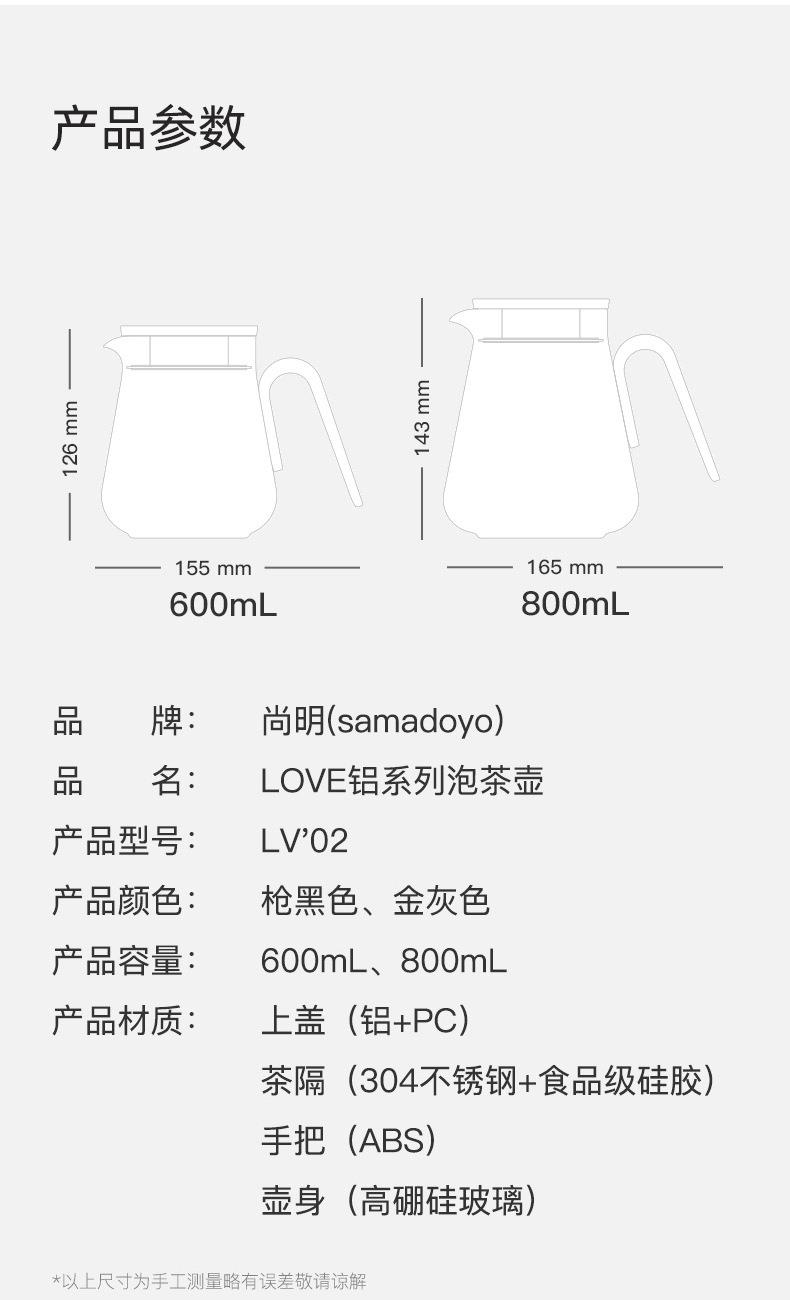容量:800mL 颜色:金色/枪黑色 内置食品级密封硅胶圈,稳固壶盖,轻松锁水,告别滴水烦恼; 细长滤孔,出水顺畅; 铝制壶盖,时尚简约; ABS磨砂把手,人体工程学设计; 高硼硅玻璃,耐170度瞬间温差