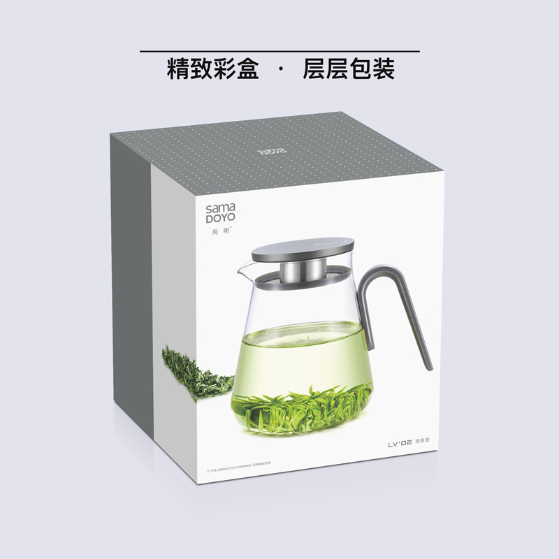 尚明耐高温玻璃泡茶壶铝盖过滤花茶壶果茶壶时尚简约800mL