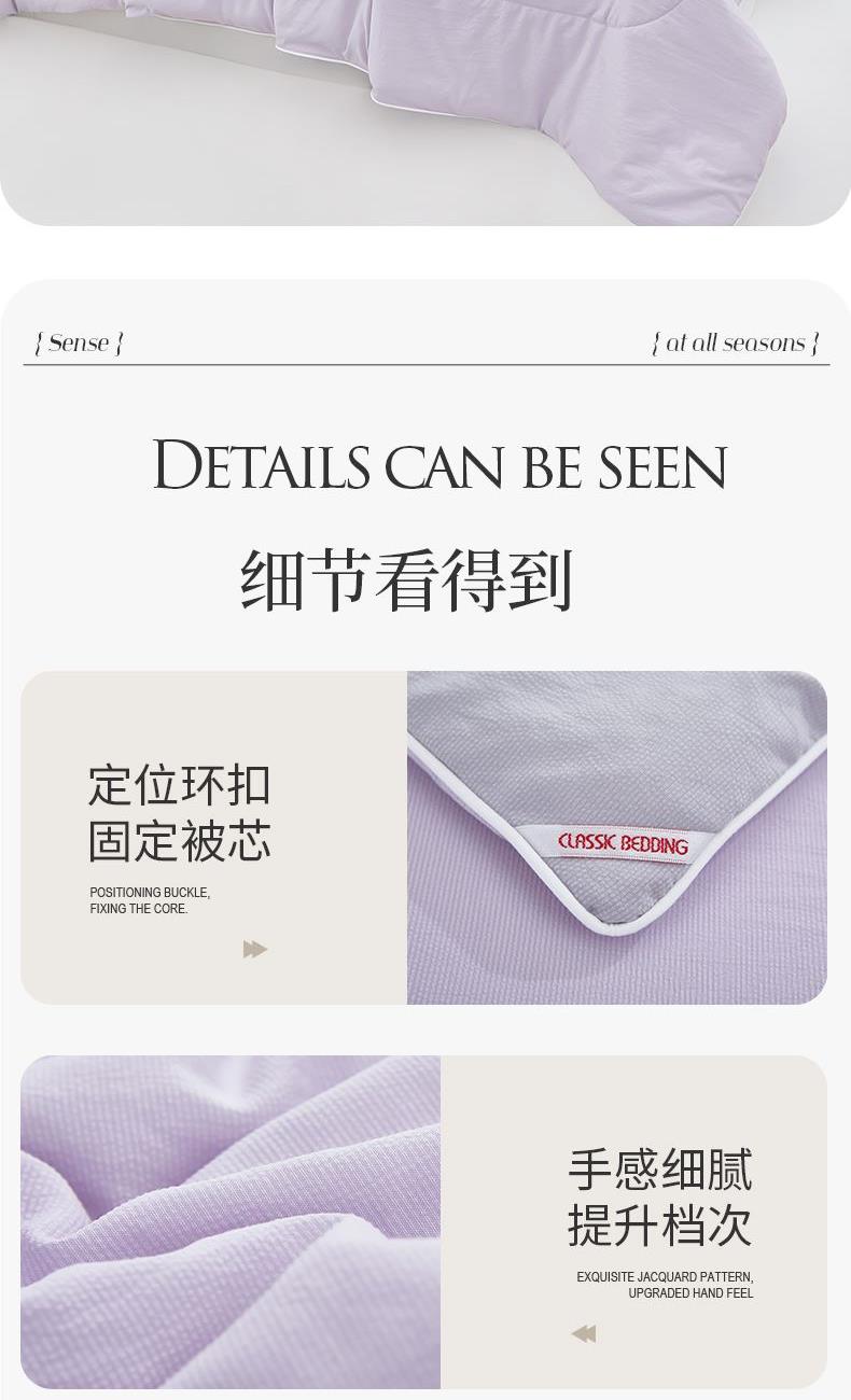 货 号:JB-1387 规 格:150*210cm 面 料:A类云纱布 填 充:聚酯纤维(A类) 总 重:900G 1.肌肤安心之选!云纱A类被,面料与填充均达A类安全标准,触感如云轻柔,带来无菌无味的安心睡眠环境。 2.云感轻柔,安心加倍!双A类品质保障,云纱布面料爽滑,填充物洁净蓬松,给宝宝和孕妈肌肤般的温柔守护。 3.为娇嫩肌肤量身打造!云纱A类被,严格遵循母婴安全标准,面料填充双A类,轻盈蓬松,呵护睡眠每一刻。