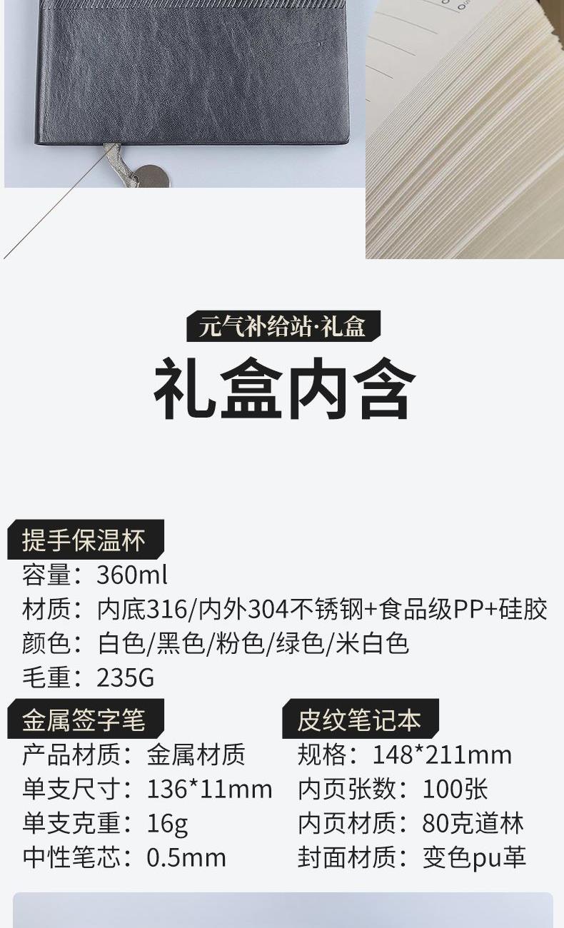 专为年轻职场人打造:保温杯,时刻续航温暖,滋养身心;笔记本与签字笔,及时捕捉灵感,记录成长。一套装备,双重守护,助您在工作战场上始终保持好状态。这不仅是实用好物,更是点亮枯燥日常的仪式感,让拼搏的每一天都能量满格