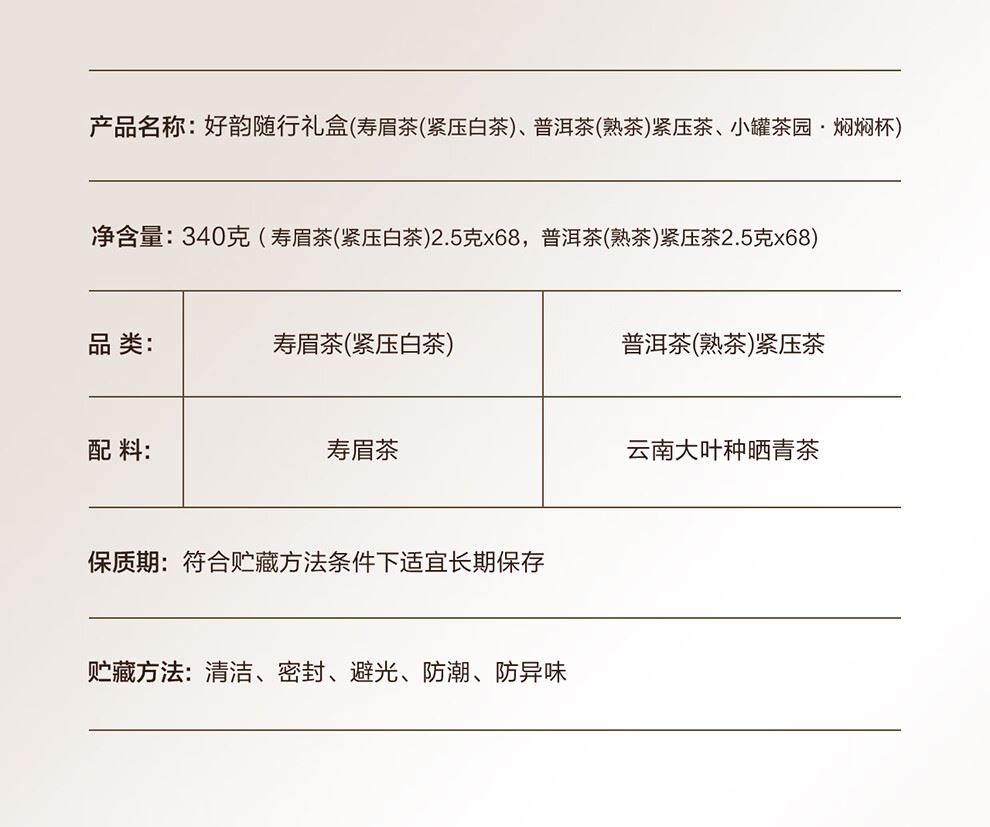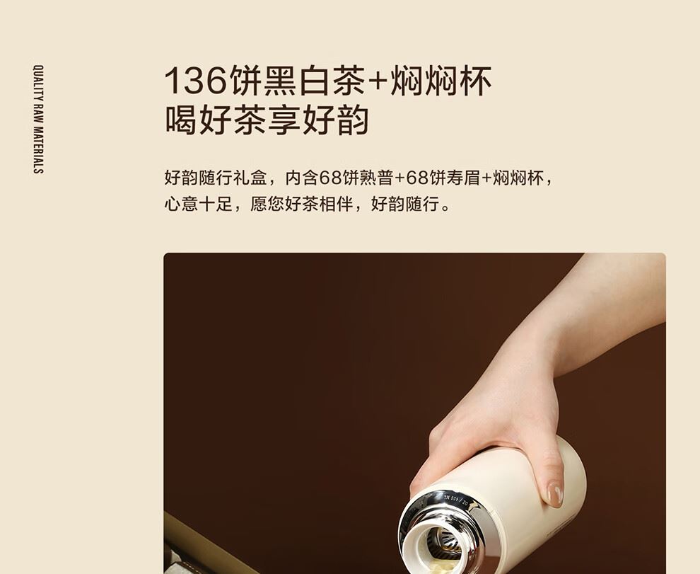 好韵随行礼盒:内含68饼熟普+68饼寿眉+400ml焖泡杯,心意十足,愿您好茶相伴,好韵随行。
