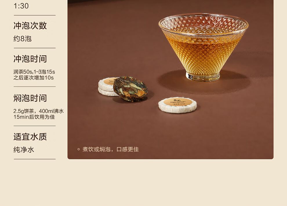 定制2.5g小饼,搭配便携摩登400ml焖焖杯移动“小茶馆”,一饼一泡轻松焖出香醇滋味,温暖每个日常。