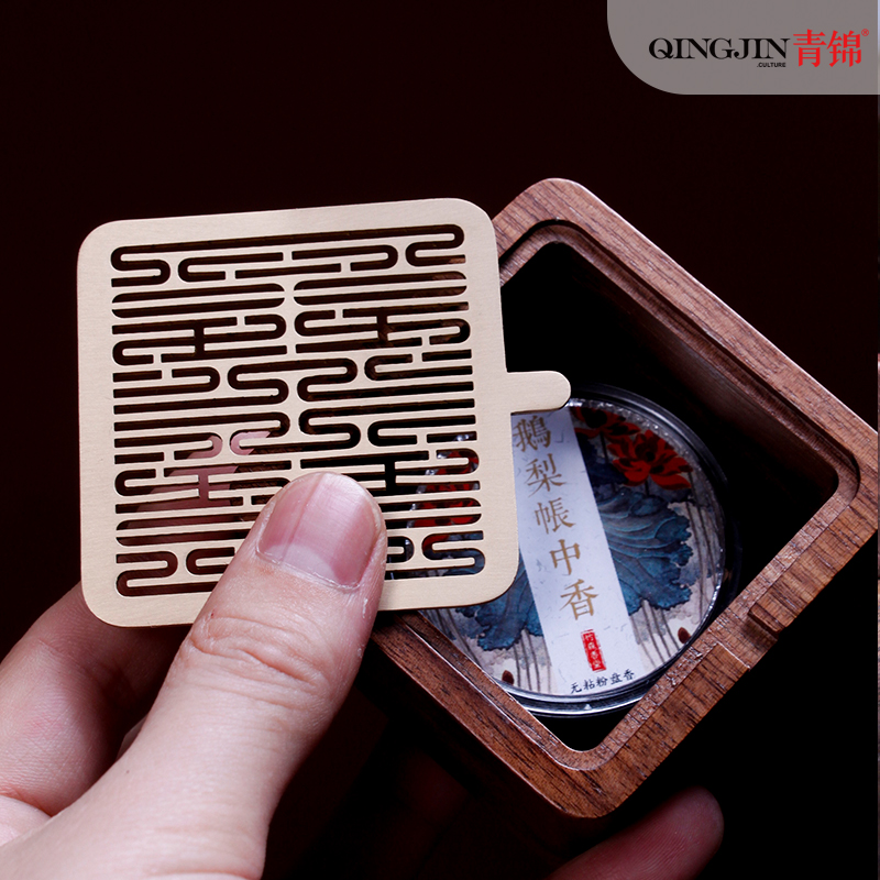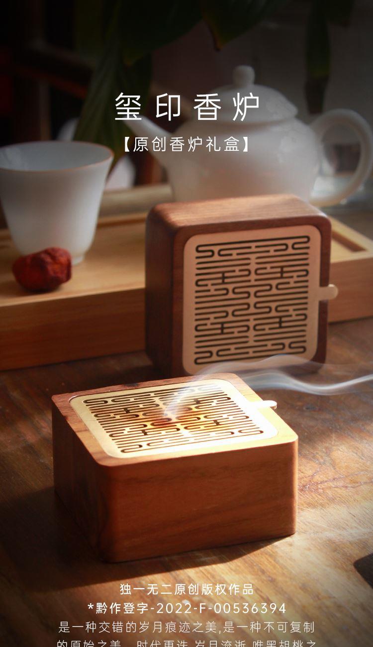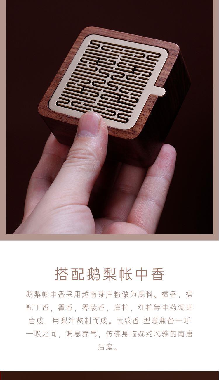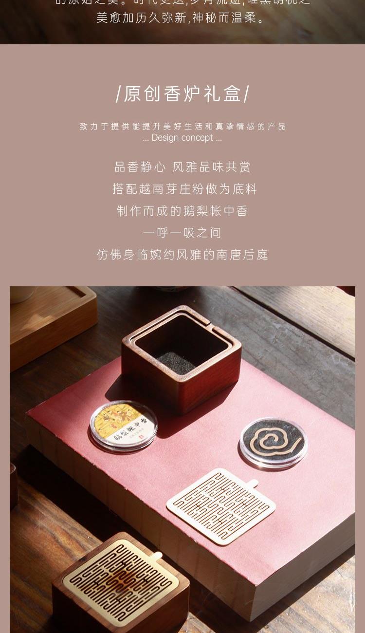 配置 玺印香炉x1 鹅梨帐中香* 1 礼盒*1 手提袋*1 材质 黄铜 黑胡桃木 尺寸 香炉 34*69*69mm 礼盒 242*240*45mm