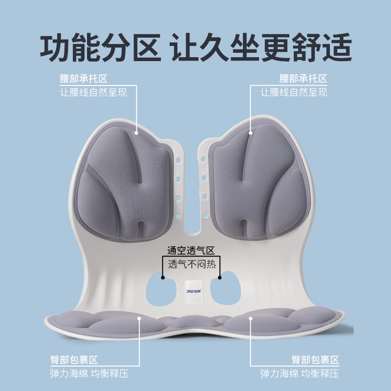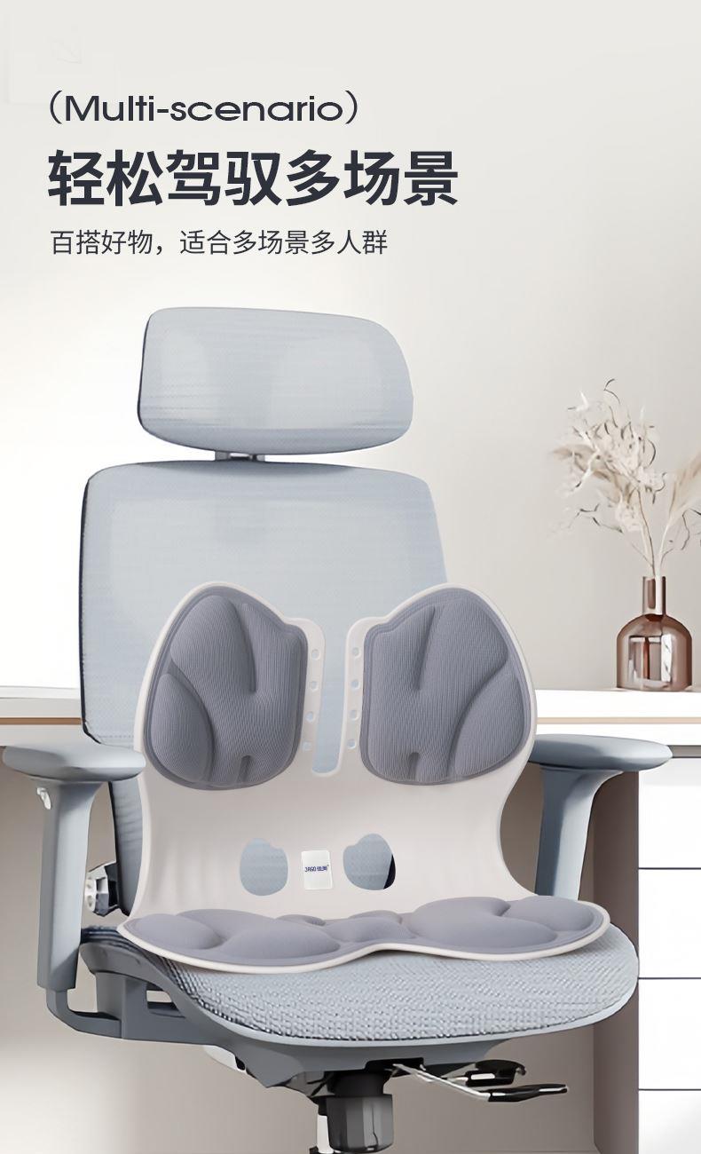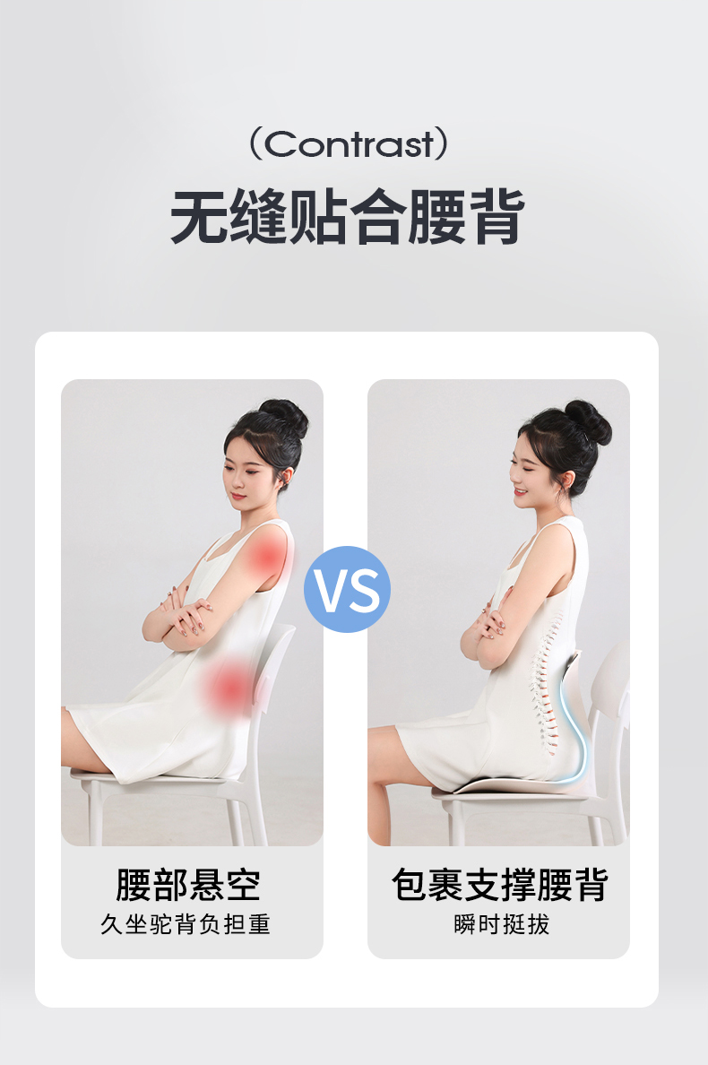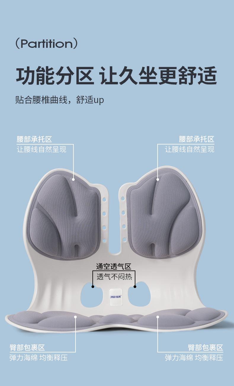 1.分区承托 腰臀同护, 科学分区支撑,让臀部与腰部享受专属呵护; 2.紧密贴合腰部曲线,细心填补每一分空隙; 3.采用杠杆原理,落坐的同时撑起腰部保证坐姿的稳定,帮助保持脊柱的挺拔;