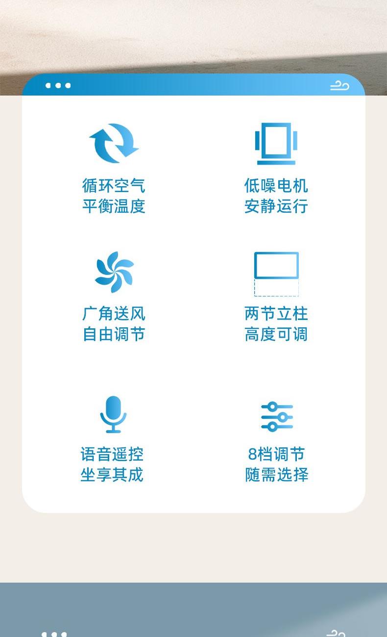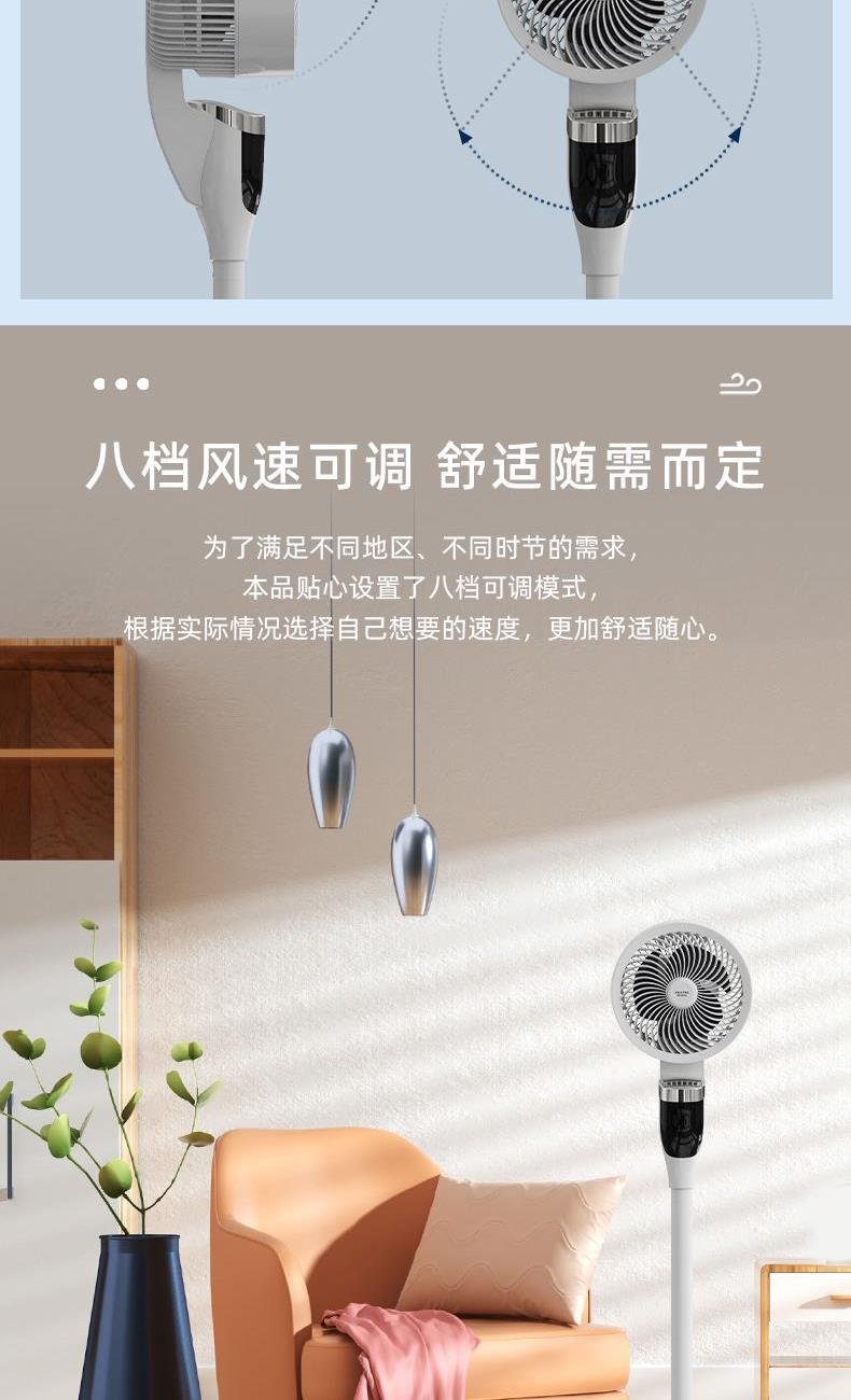 人性化设计:智能语音,8档风速,遥控器带暴风档位。