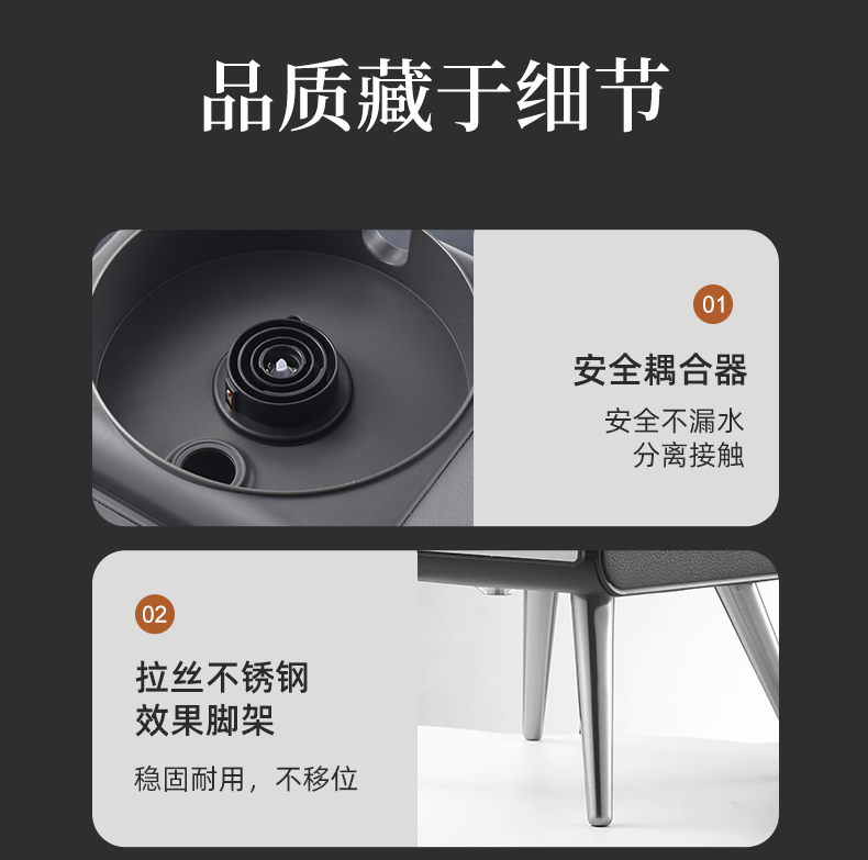 侧面上水设计,使用更方便,水路畅通不堵塞
