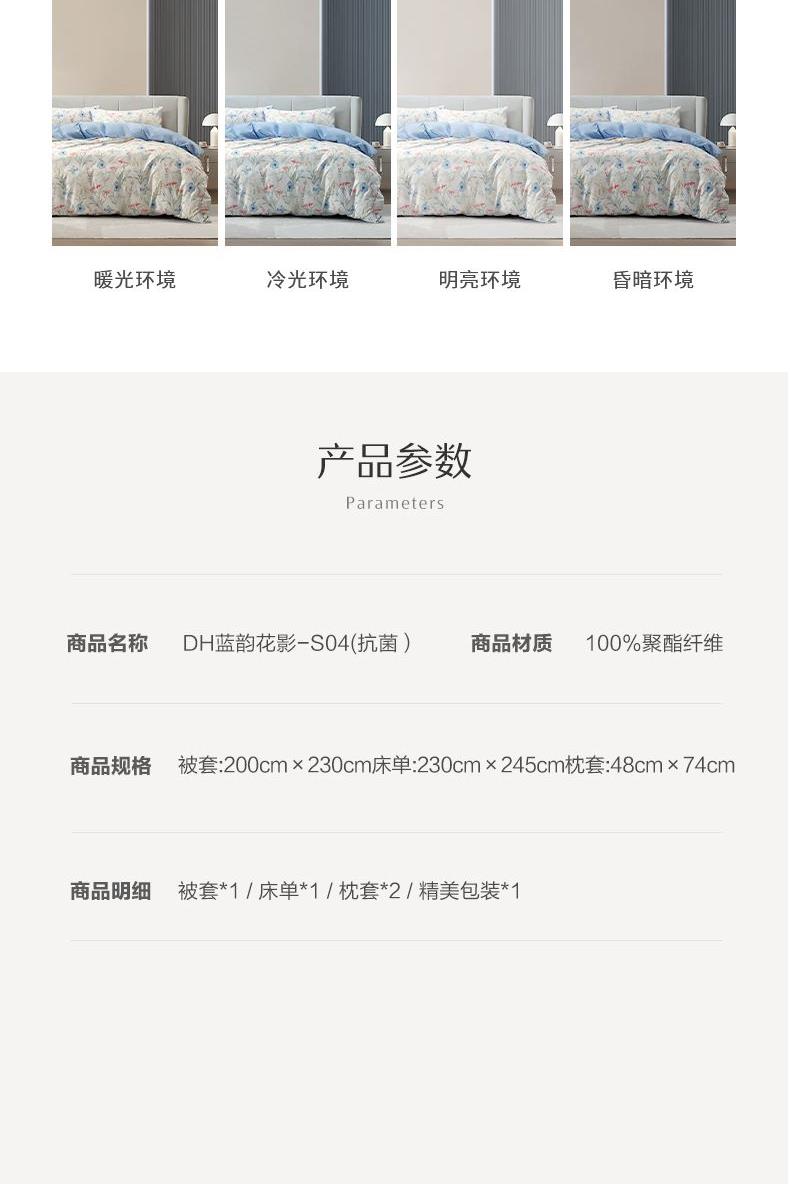 面料:聚酯纤维 被套:200cm×230cm×1 床单:230cm×245cm×1 枕套:48cm×74cm×2