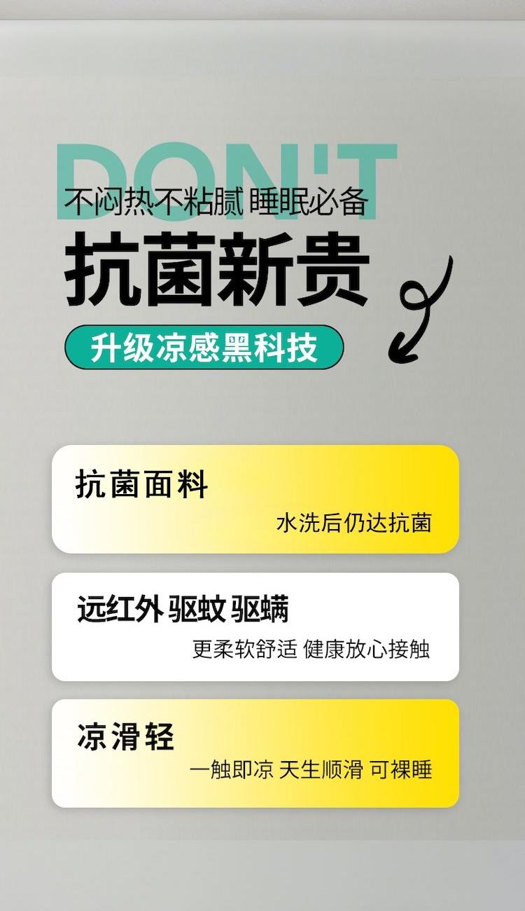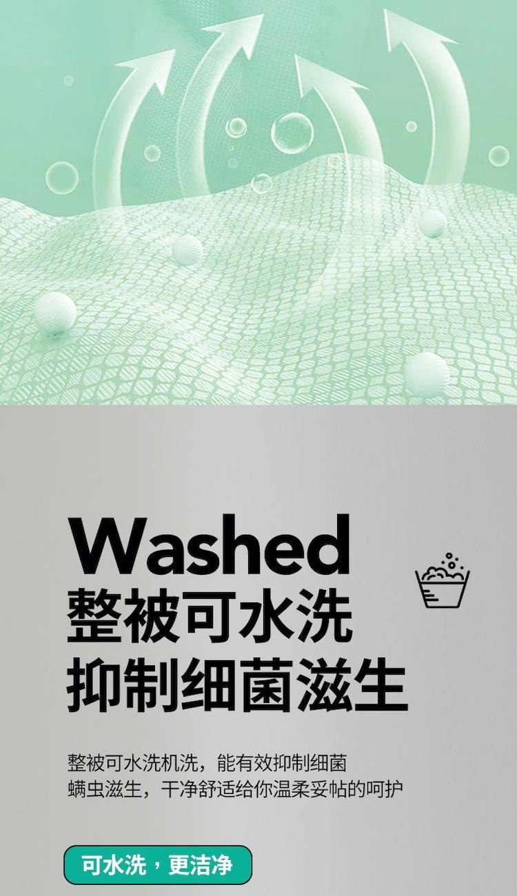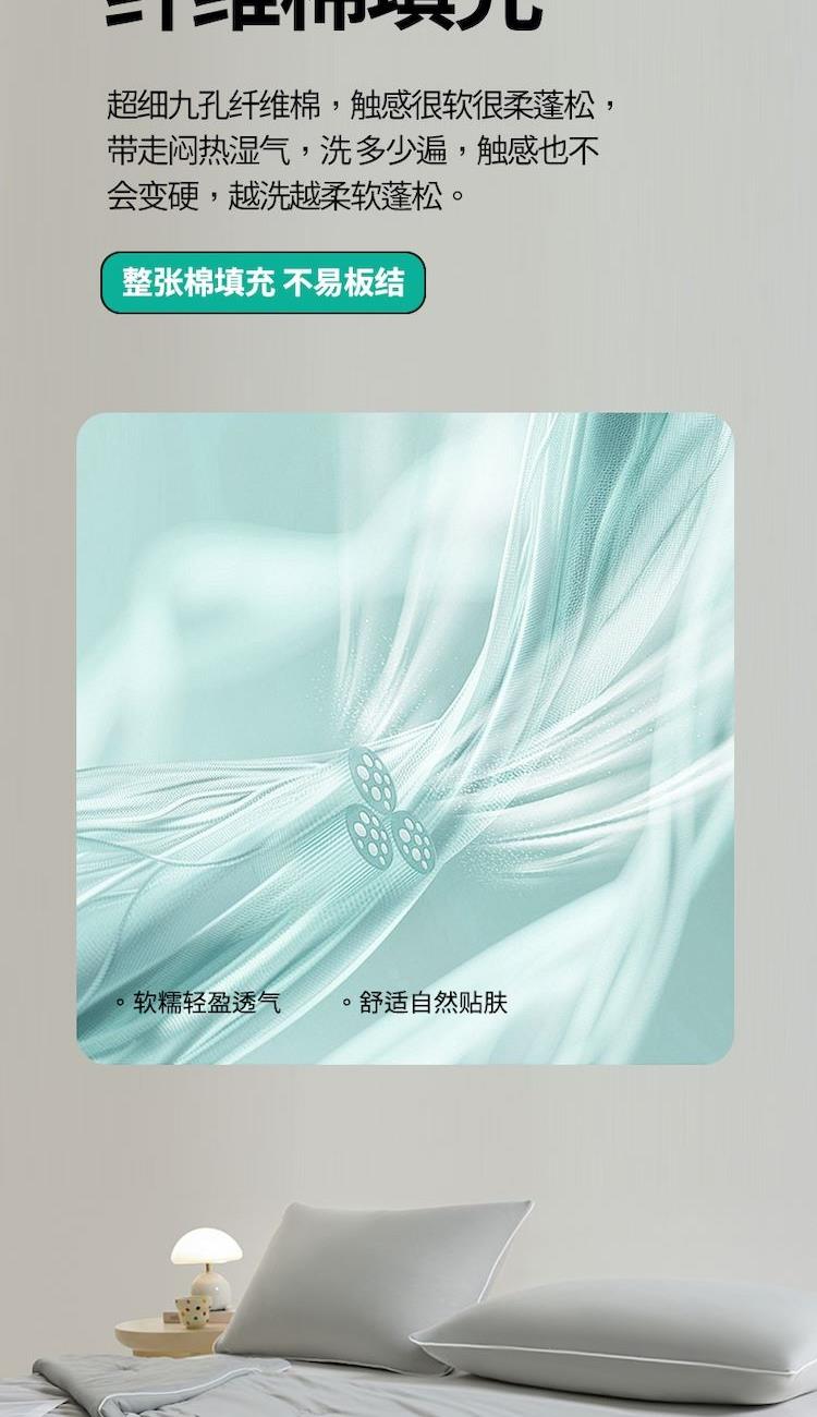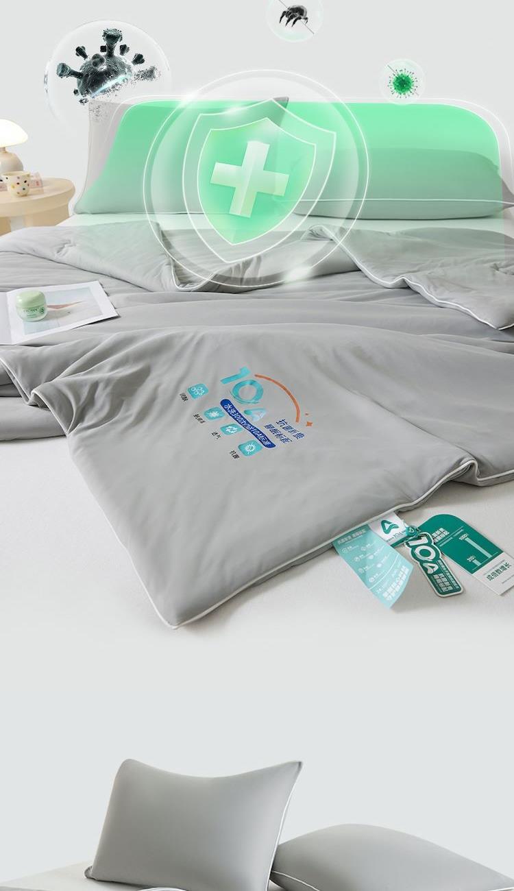 规格:200*230cm 面料:凉感纱(氨纶+聚酯纤维) 填充:羽丝棉(聚酯纤维) 重量:1.5kg 卖点:1.良好的透气度,给您清爽的舒适 2.利用独特的纤维断面结构,从而降低身体的温度 3.生产过程中不添加任何荧光剂,从里到外都很安心