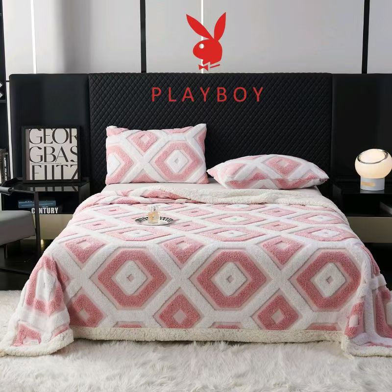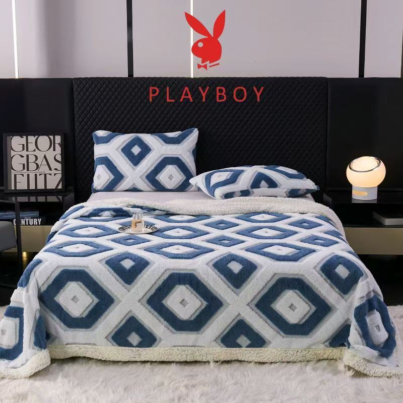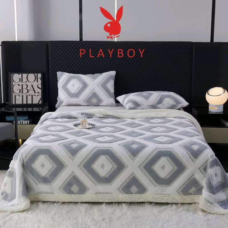花花公子-家纺-几何空间阳离子提花镂空午睡双层毛毯办公室盖毯