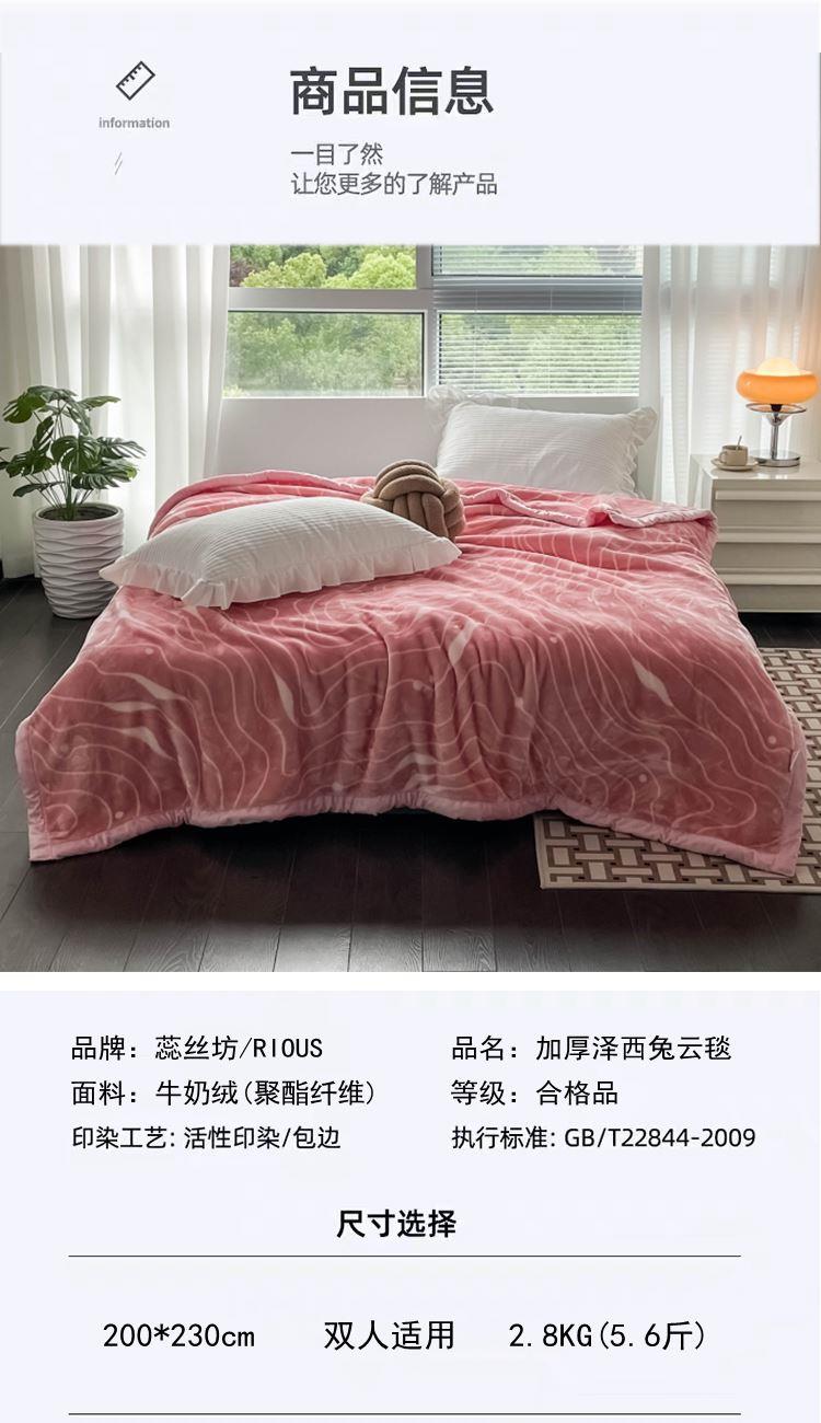 蕊丝坊家纺泽西兔云毯200*230cm2.8kg