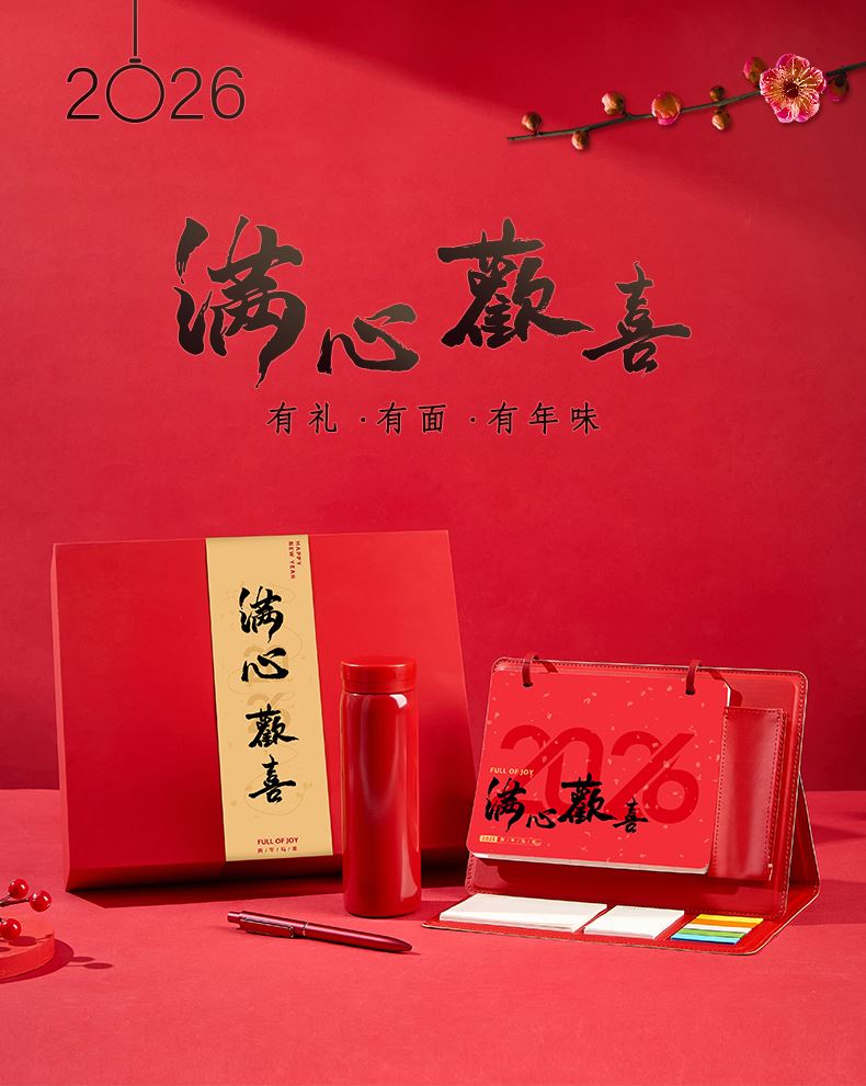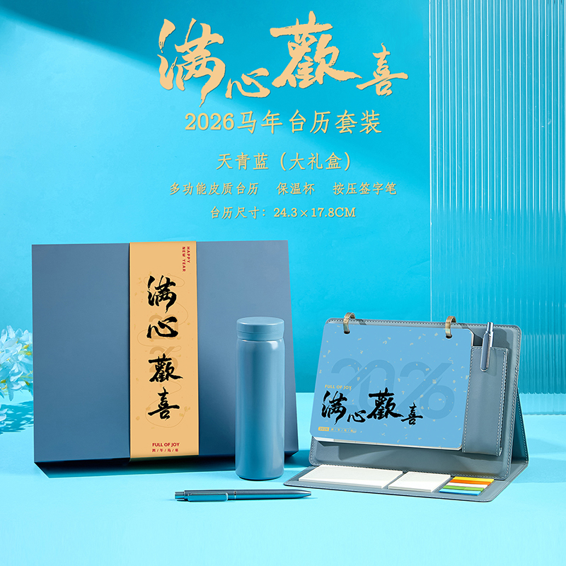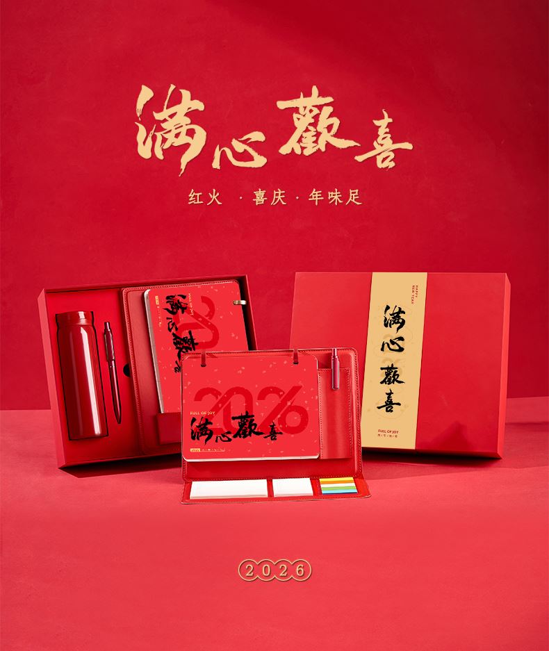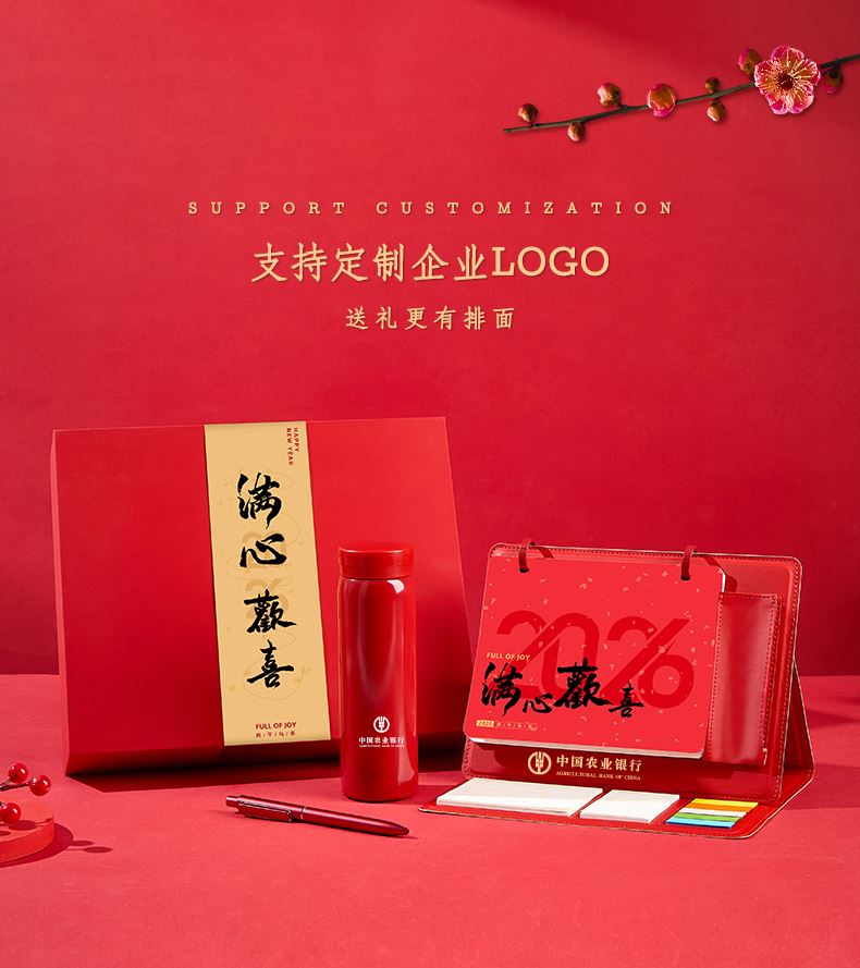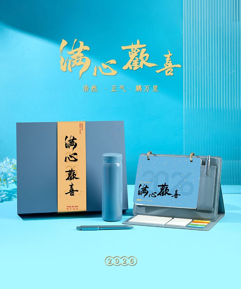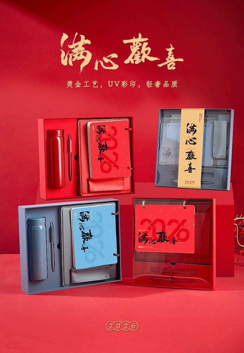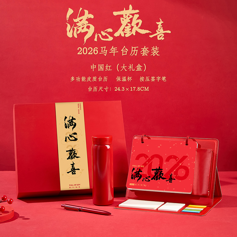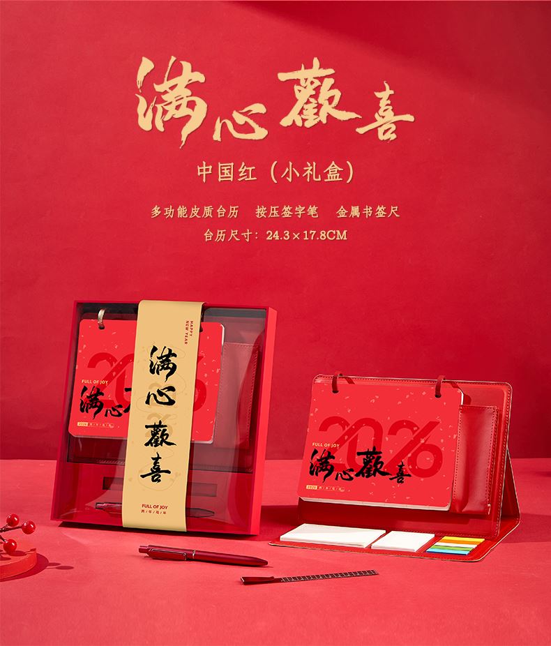 一辈子:2026新年台历日历定制logo满心欢喜年会礼盒套装