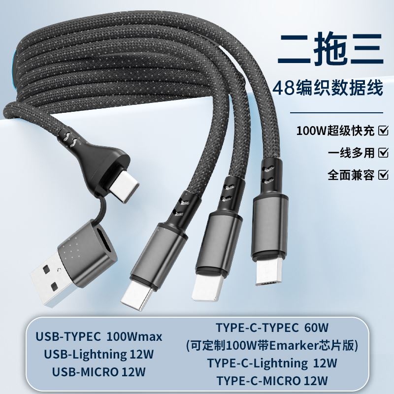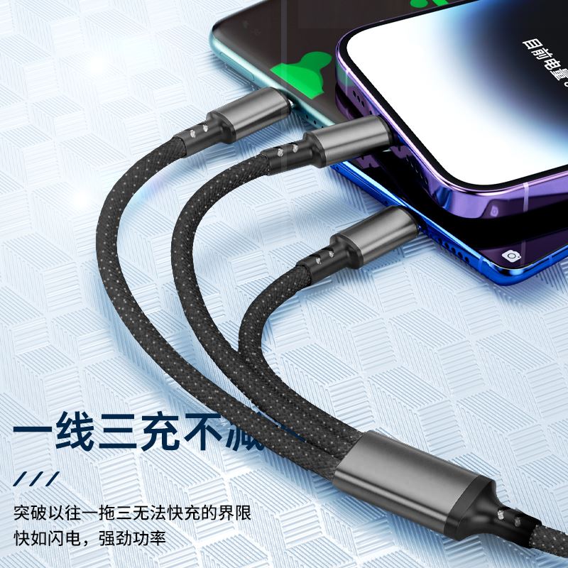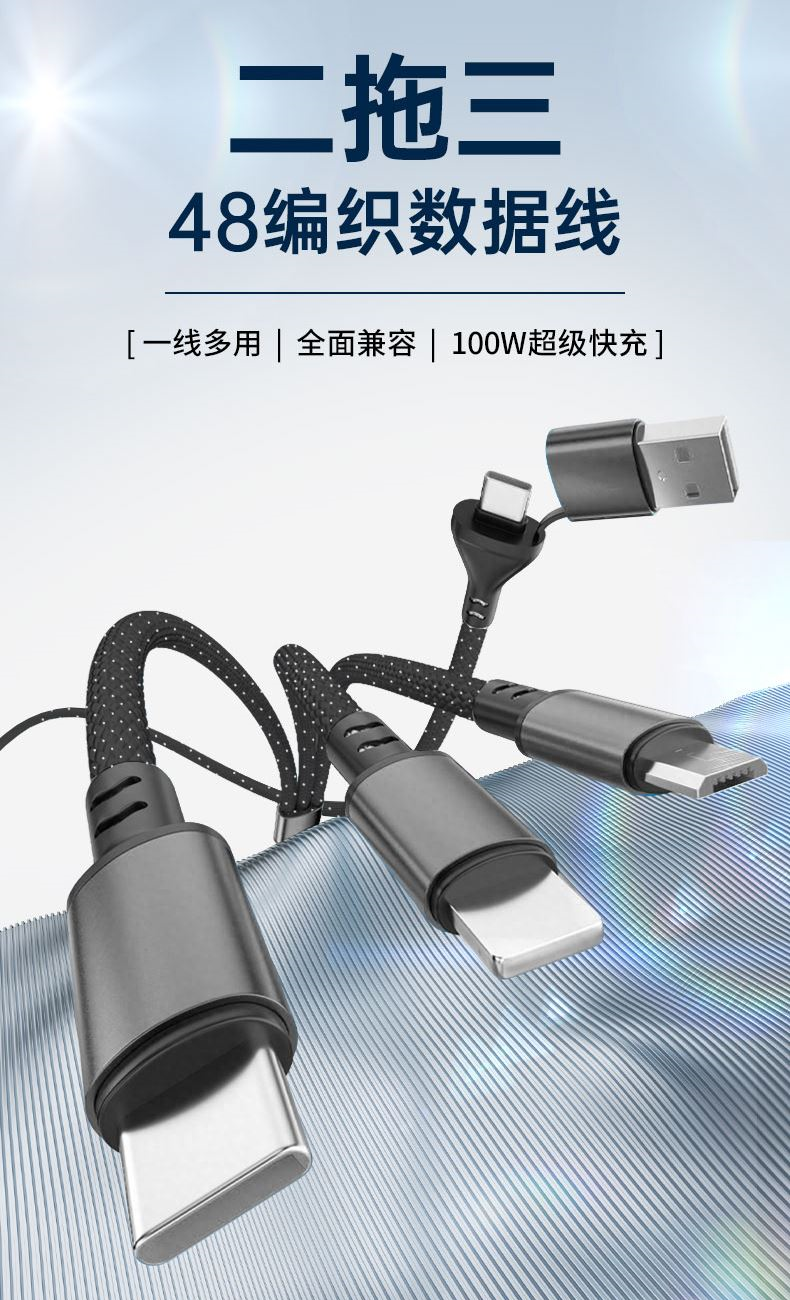克 重: 45g 线 长:1.2 米 材 质:PVC 铝合金 输 出:5A 接口:micro/TYPE-C/苹果 协 议:SCP QC3.0 铜丝:60*2+15*2 0.08纯铜 颜 色:灰白色 快充100W、尼龙编织材质、耐拉耐折,易收纳,携带方便,适用于苹果,安卓,type-C 适用范围:适用于市面上所有常见手机。