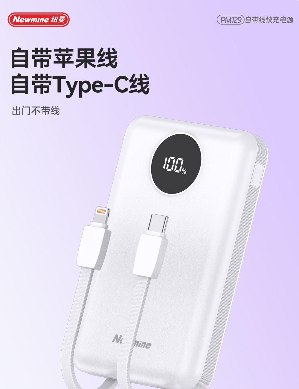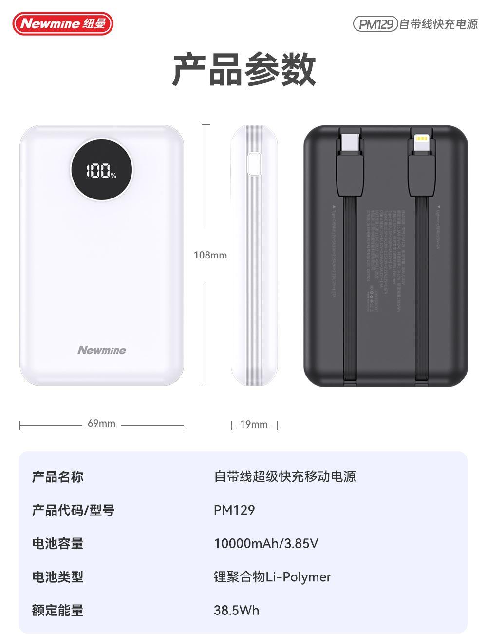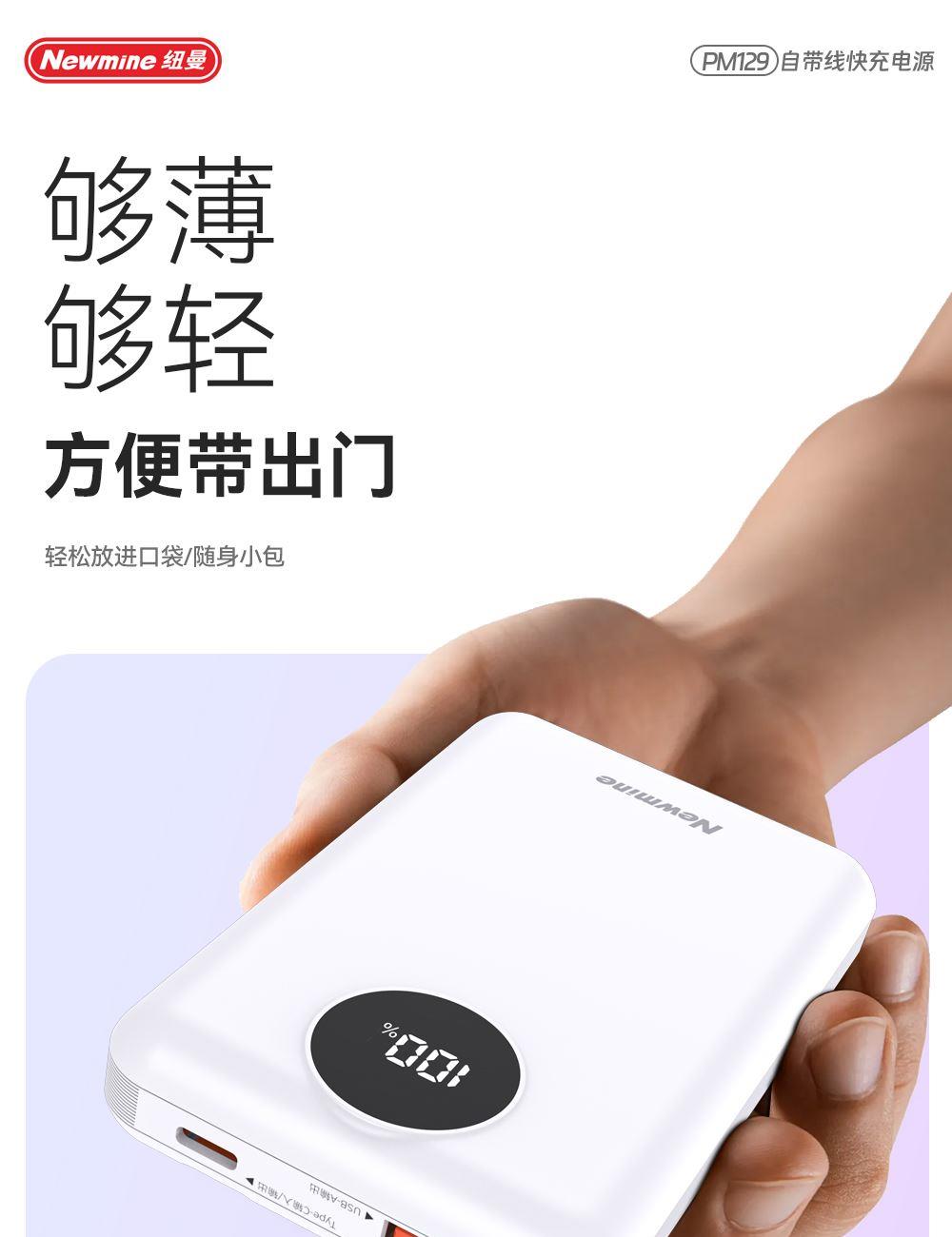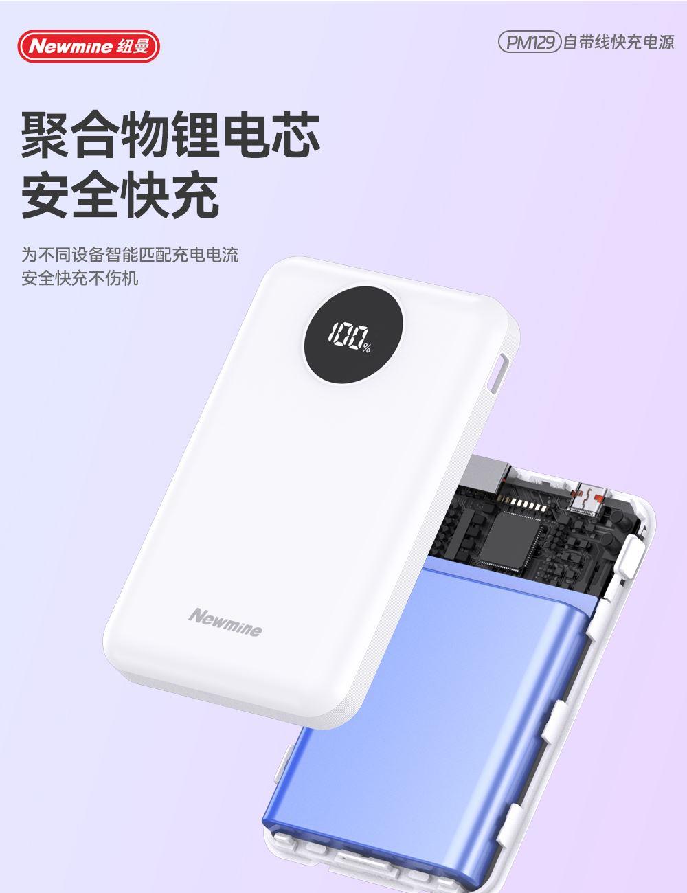 纽曼PM12910000毫安自带线快充数显移动源 纽曼PM12910000毫安自带线快充数显移动源