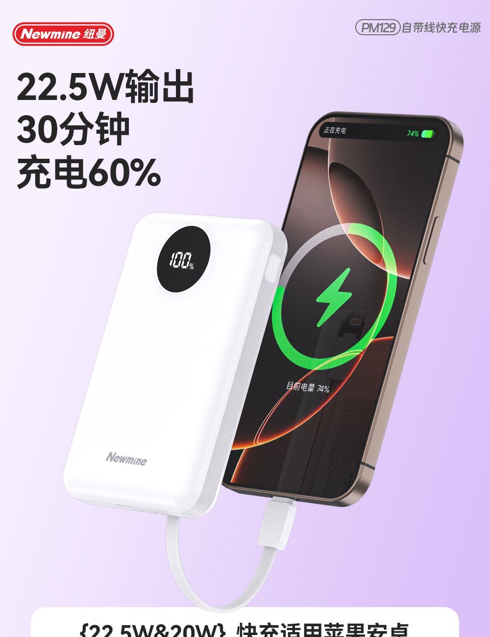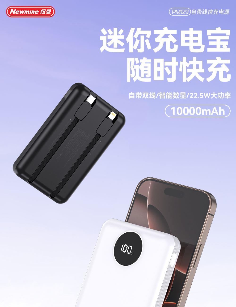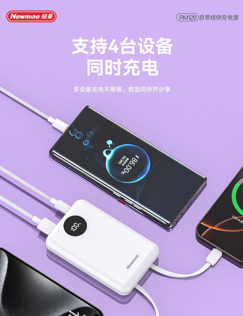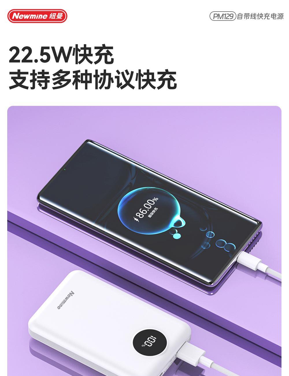 纽曼PM12910000毫安自带线快充数显移动源 纽曼PM12910000毫安自带线快充数显移动源
