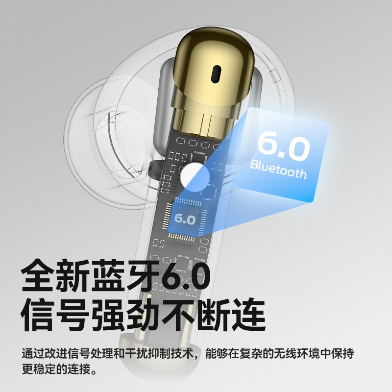 • 蓝牙6.0,高能内“芯”时刻畅享,传输快,功耗低