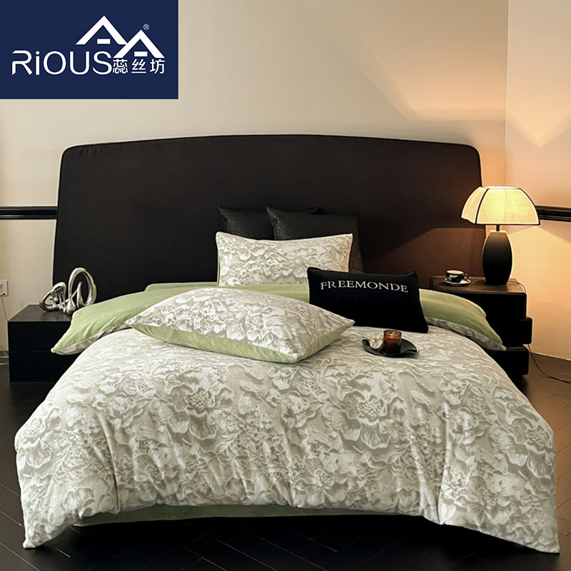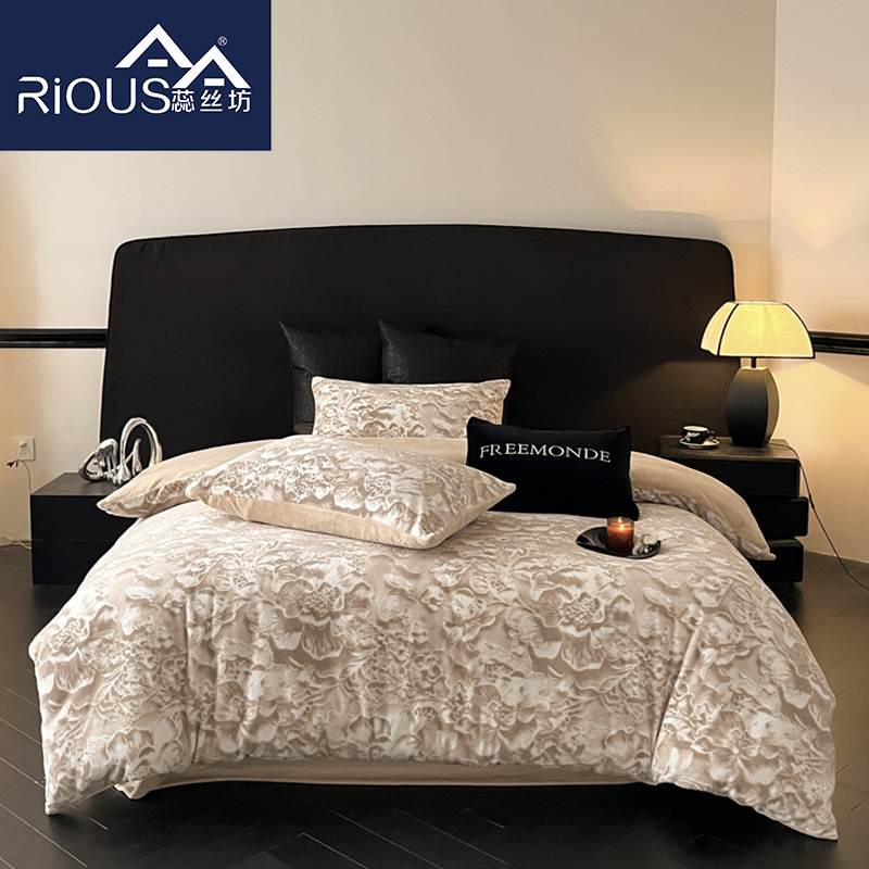 蕊丝坊家纺丽娜雕花牛奶绒床单四件套