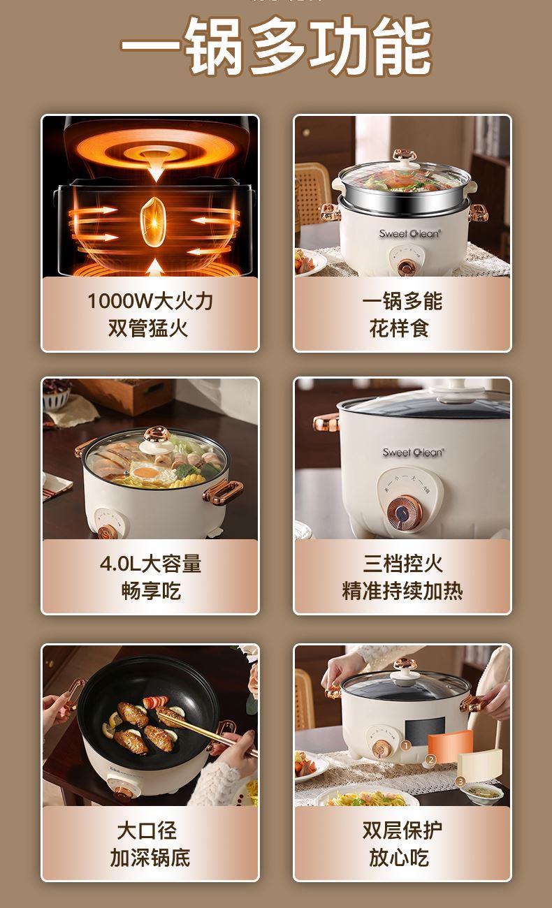 思薇科林多功能锅电煮锅电火锅电炒锅小电锅XCY-669