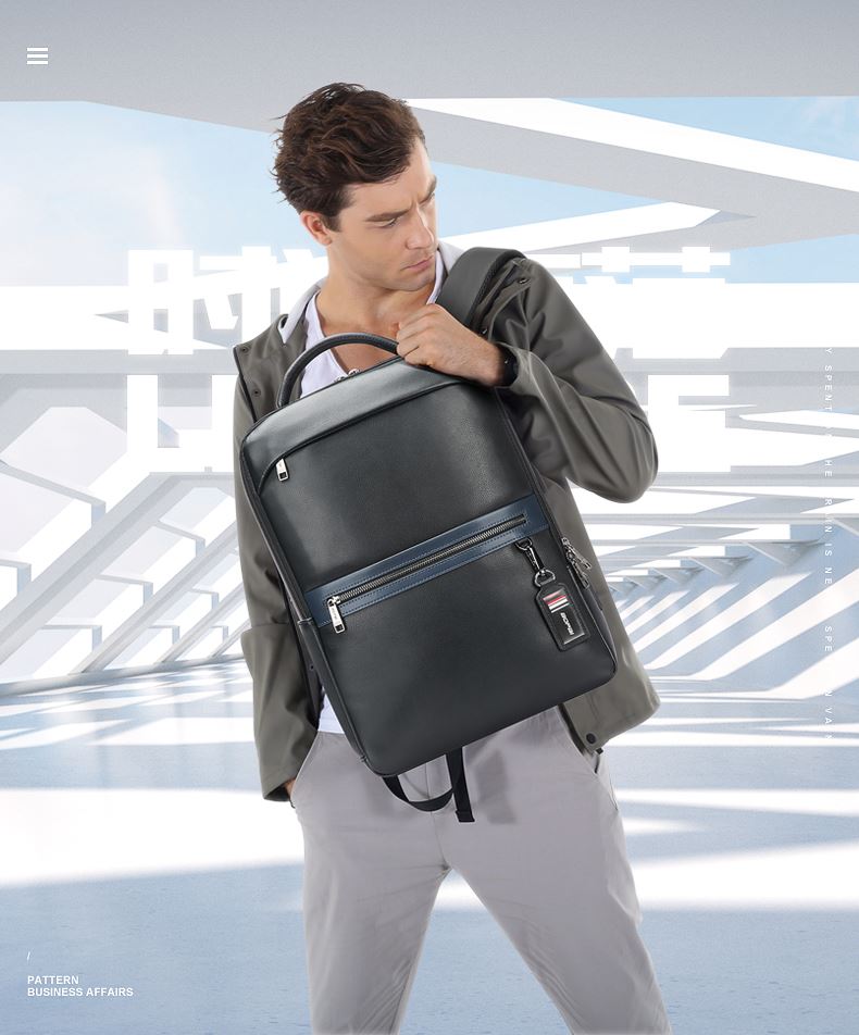 博牌双肩包牛皮商务背包16英寸上班电脑包61-122101