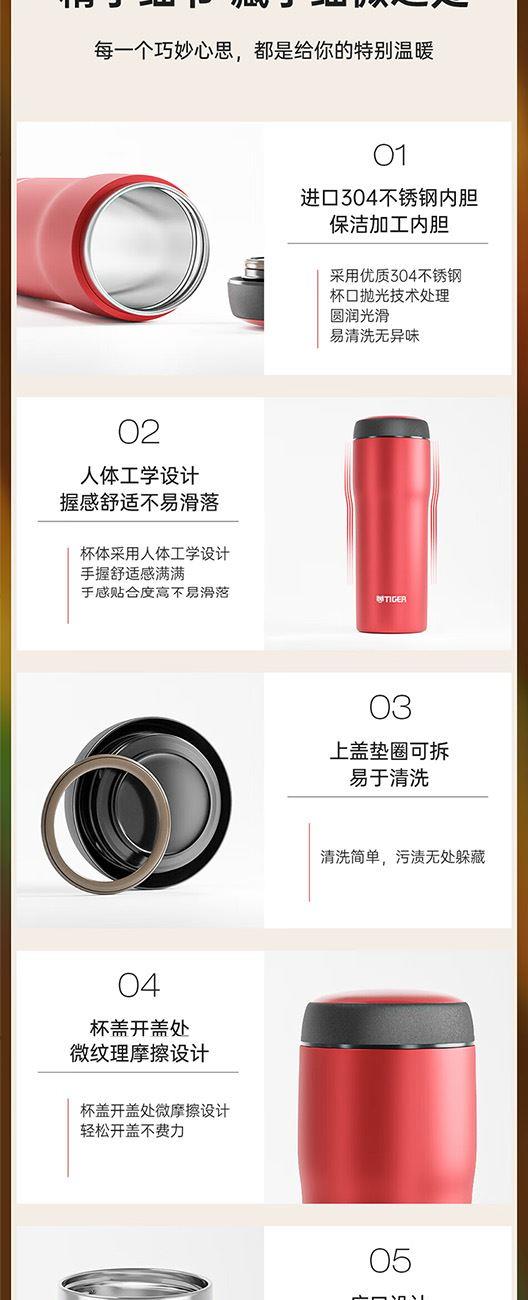 容量:480ml 材质:优质304不锈钢 尺寸:7.0*7.0*20.5cm 重量:0.22kg 保温效果:6小时68℃以上 保冷效果:6小时8℃以下 不易脏污,不易沾染异味 本体可以整体清洗 栓体可整体清洗广口设计