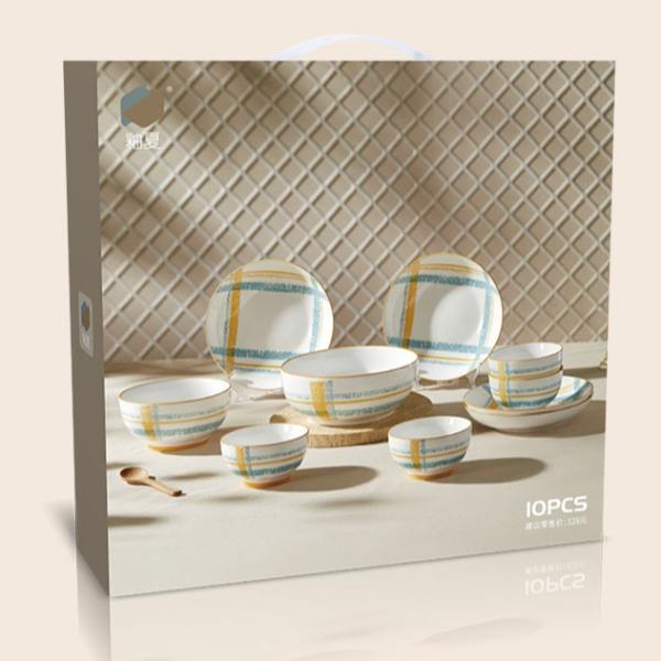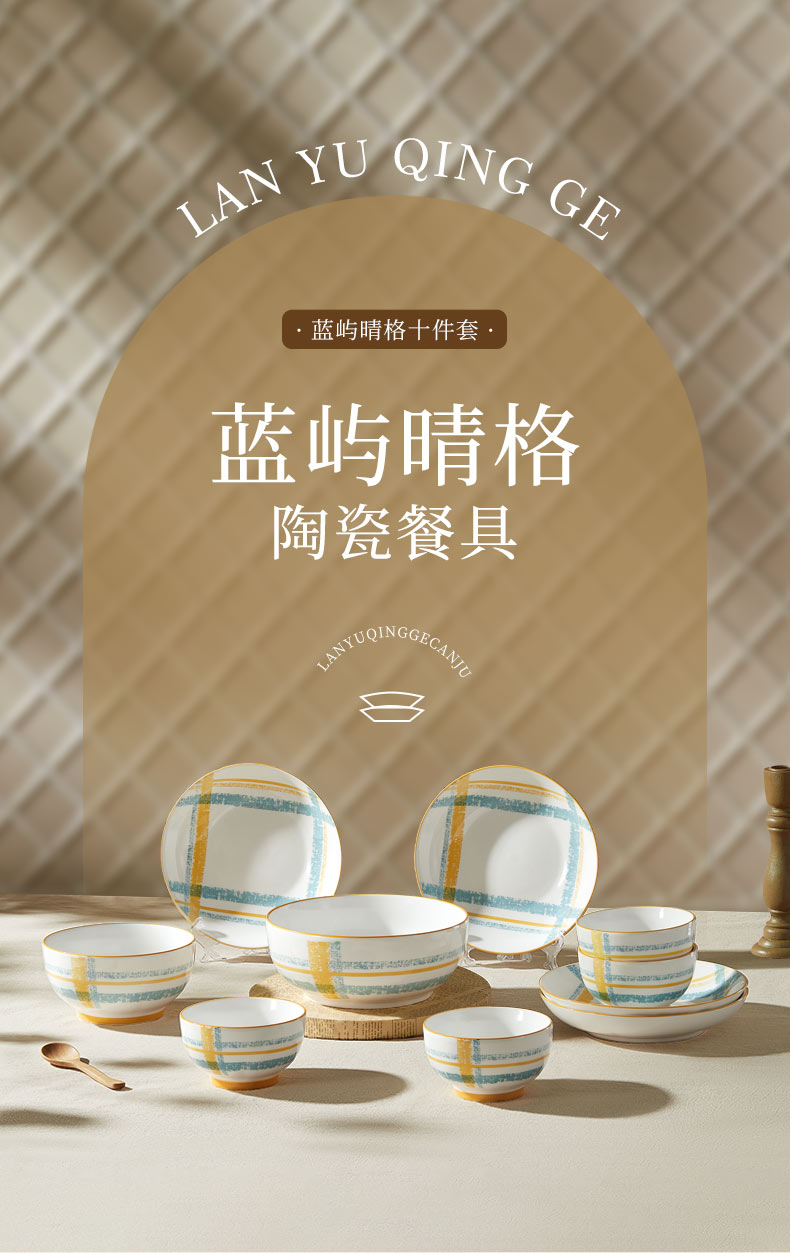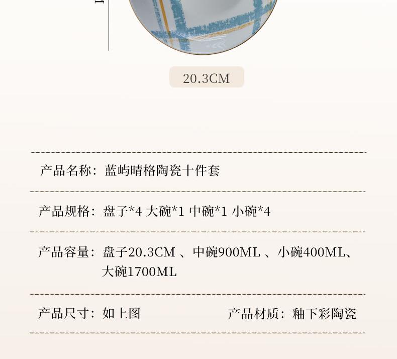 釉夏蓝屿晴格陶瓷餐具十件套Y-LY/L10