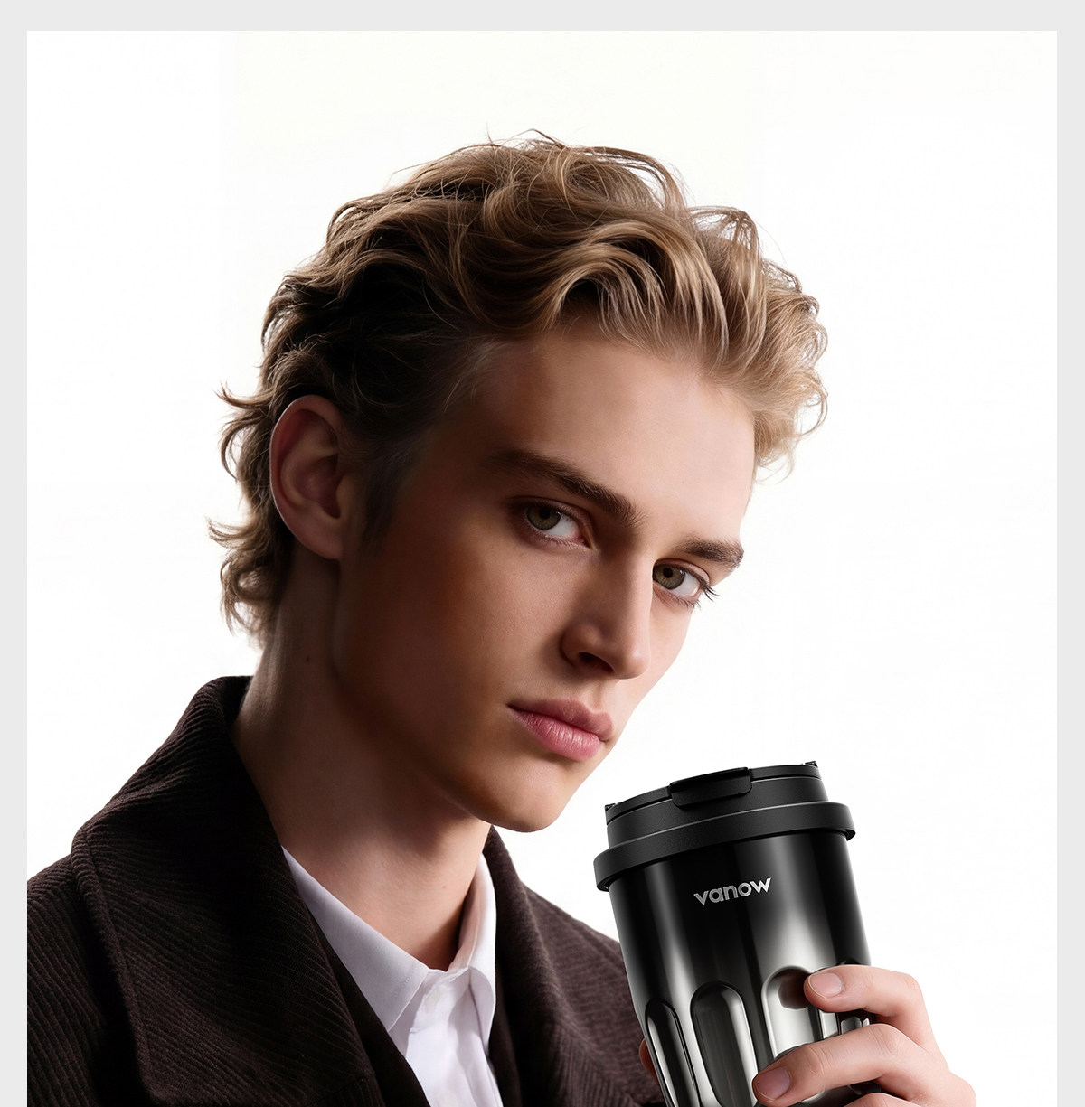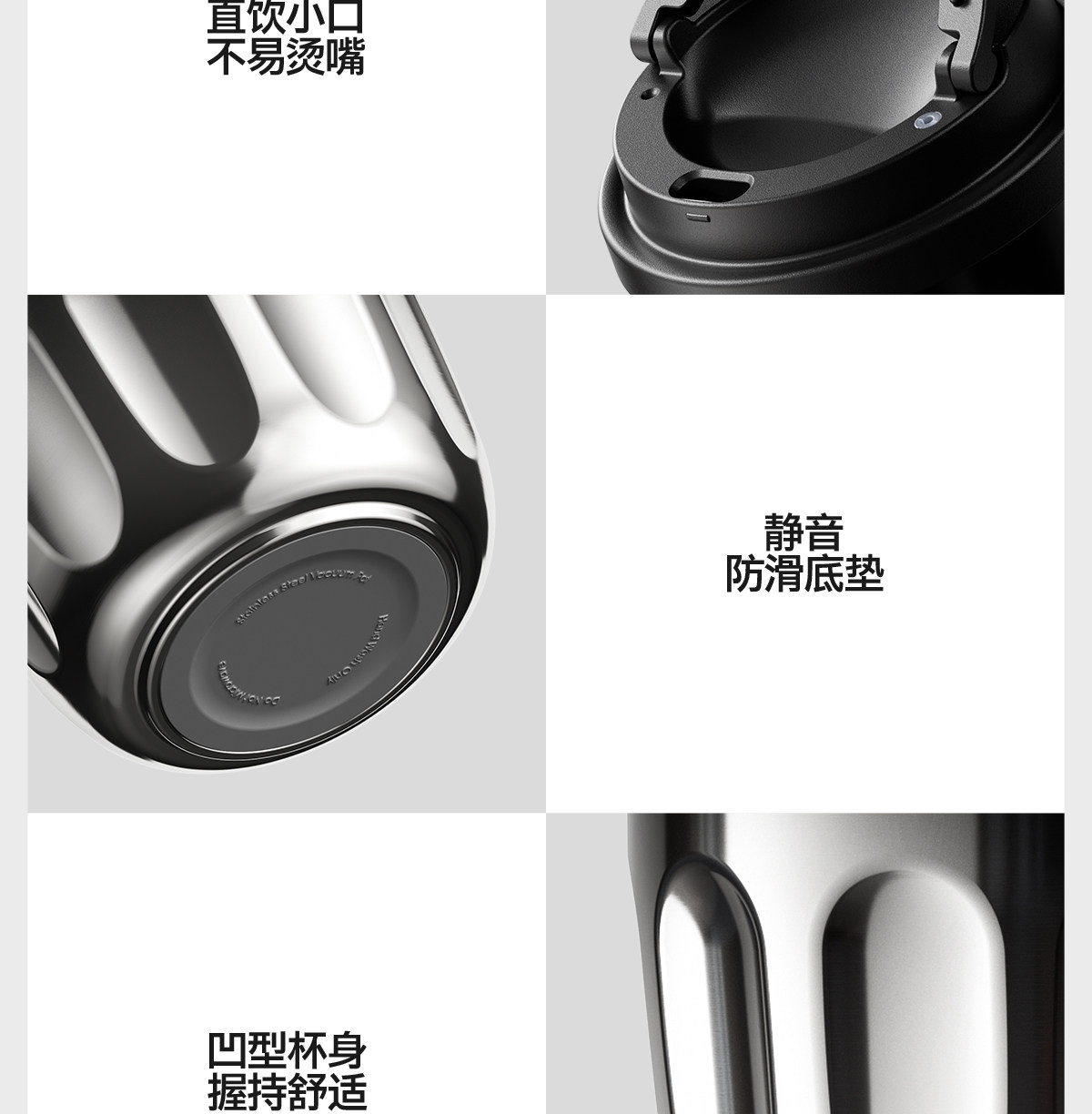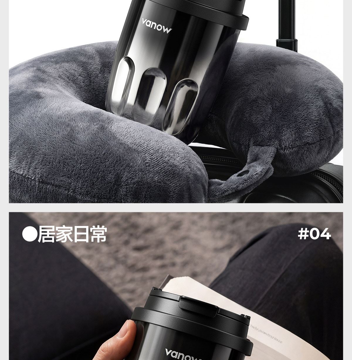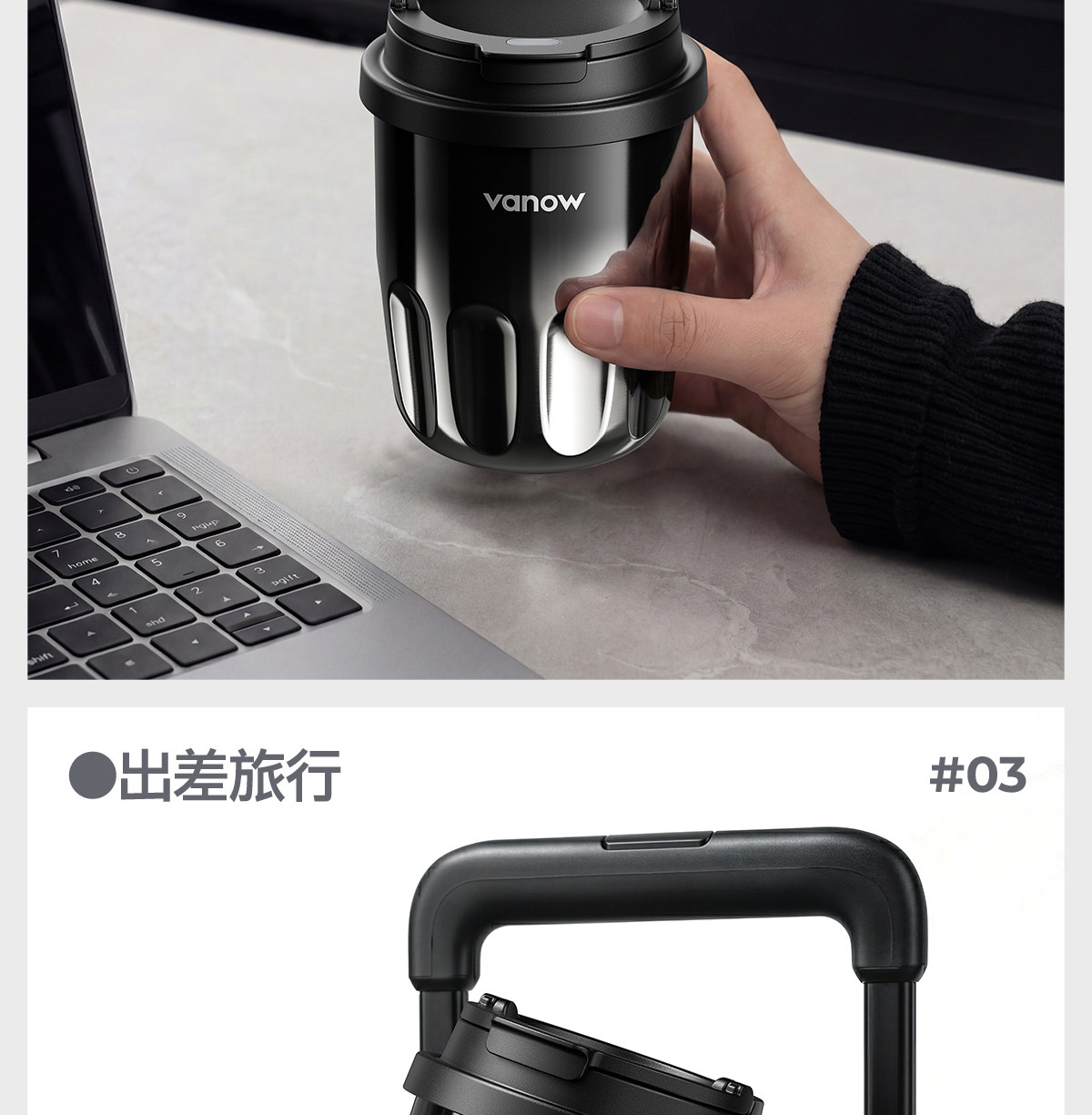 型号:VO-MN32K 颜色:极夜暮染,纯白续章,夜色幻影,青烟暮迟 容量:320ML 尺寸:123*90mm 材质:316不锈钢/食品用pp/硅橡胶 产品卖点:1.长效保温保冷,口感始终在线 2.改变的是日程,不变的是手心温度 3.轻量便携,手握无压力,揣包无负担 4.高颜出街,出行秒变时尚达人 5.翻盖卡扣设计,直饮不碰鼻