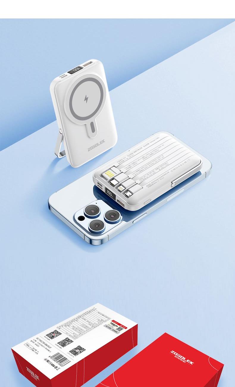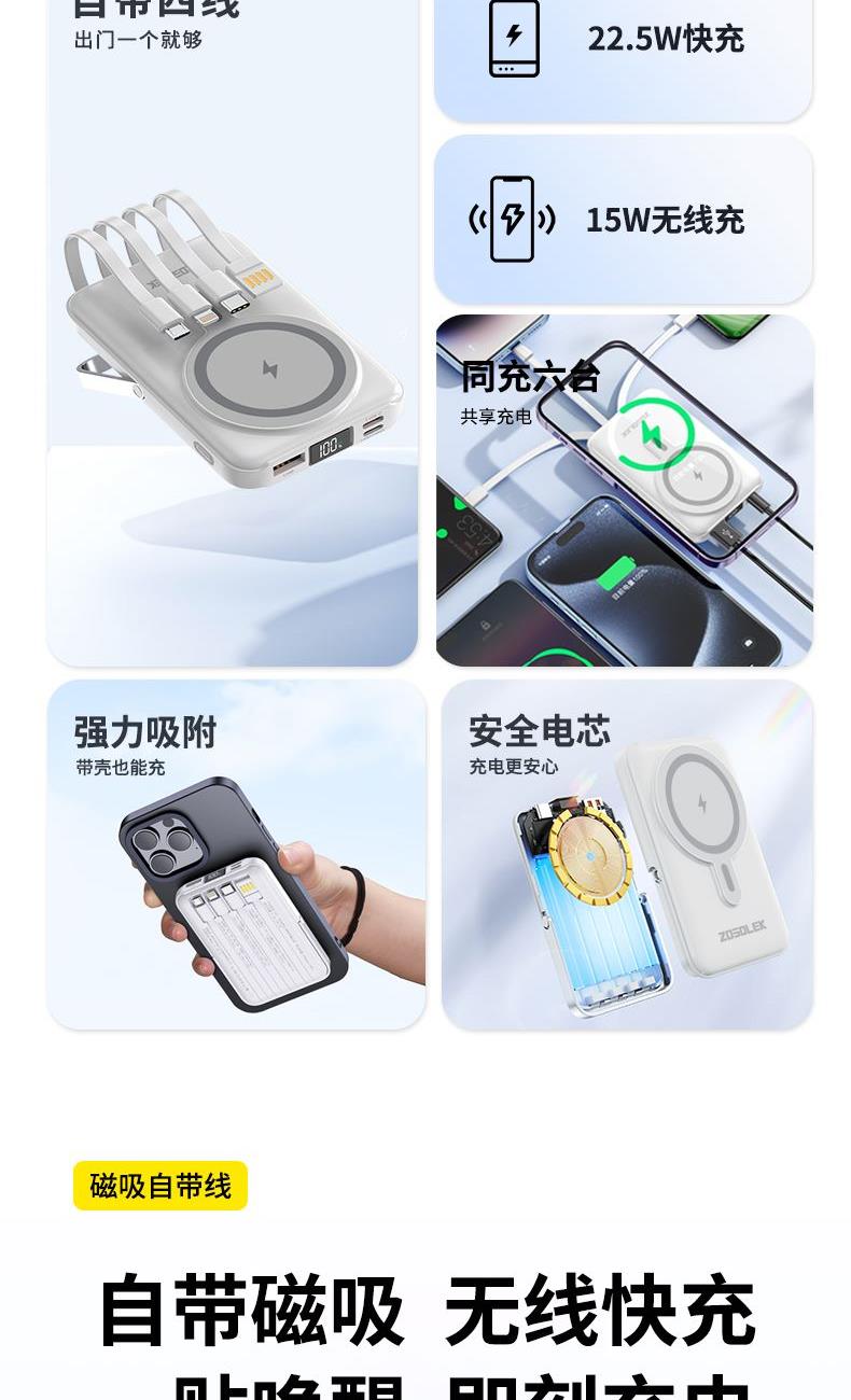 3C认证、15W磁吸无线充、22.5W快充、自带四线、数显电量、手机支架
