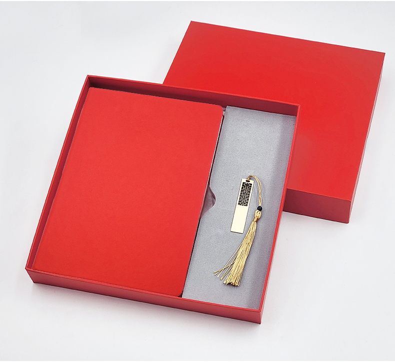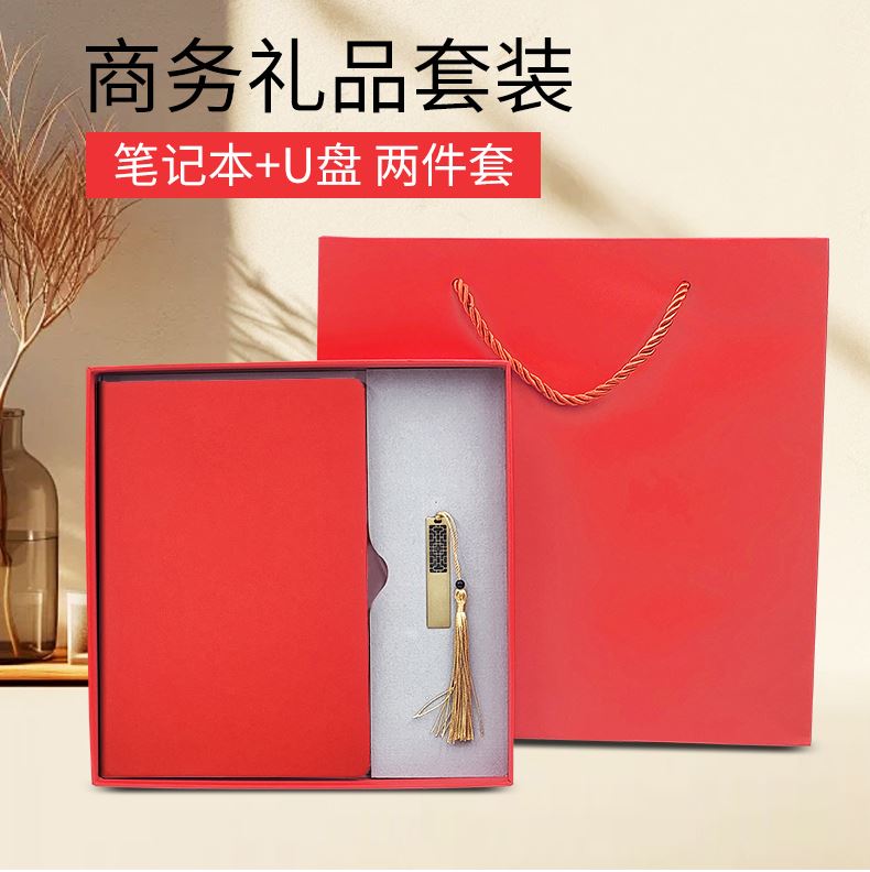 礼盒配置 : 1、A5硬皮PU皮笔记本 2、金属镂空16GU盘 3、红色包装盒尺寸:227*227*33mm 4、红色手提袋尺寸:270*270*55mm 5、重量:约32KG/箱
