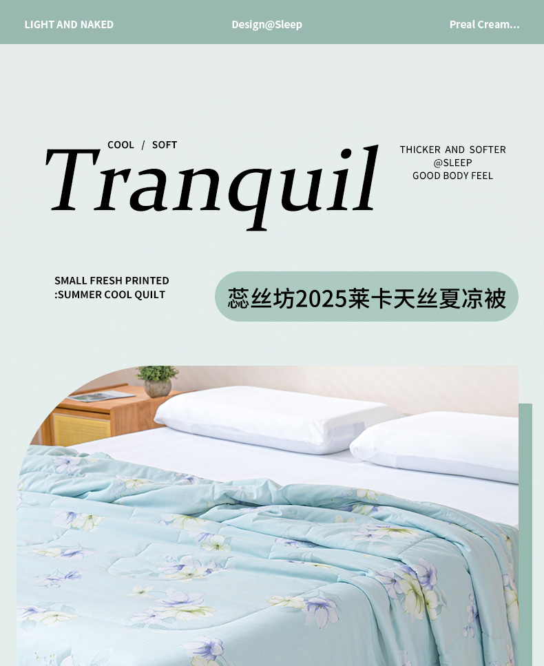 蕊丝坊家纺莱卡天丝夏凉被200*230cm