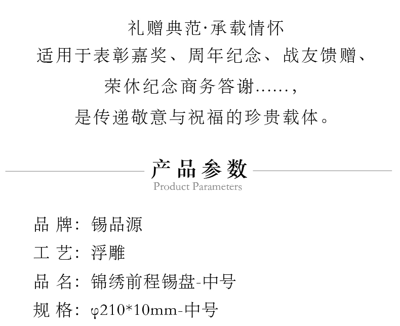 锡品源锦绣前程锡盘荣休周年礼校庆商务奖杯摆件功勋荣誉支持定制 锡品源锦绣前程锡盘荣休周年礼校庆商务奖杯摆件功勋荣誉支持定制