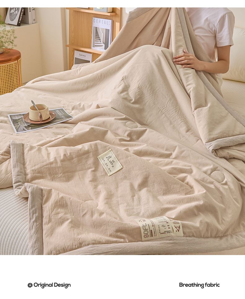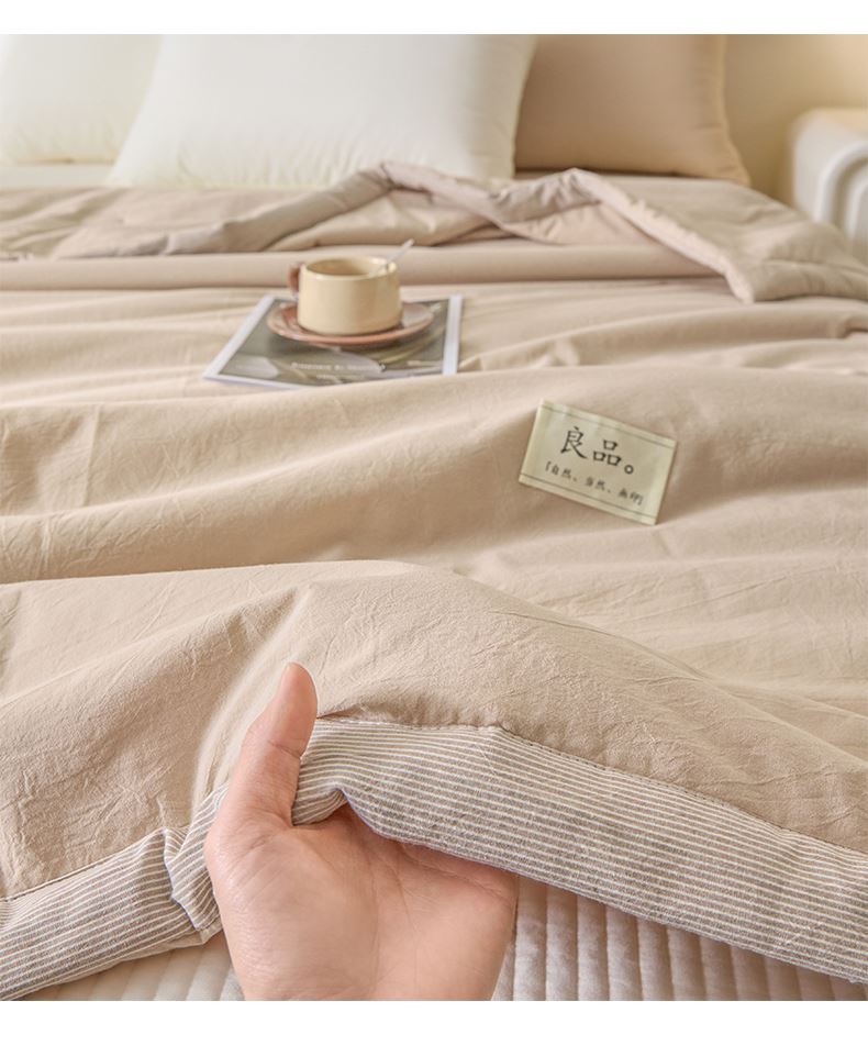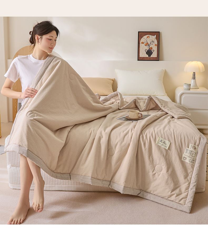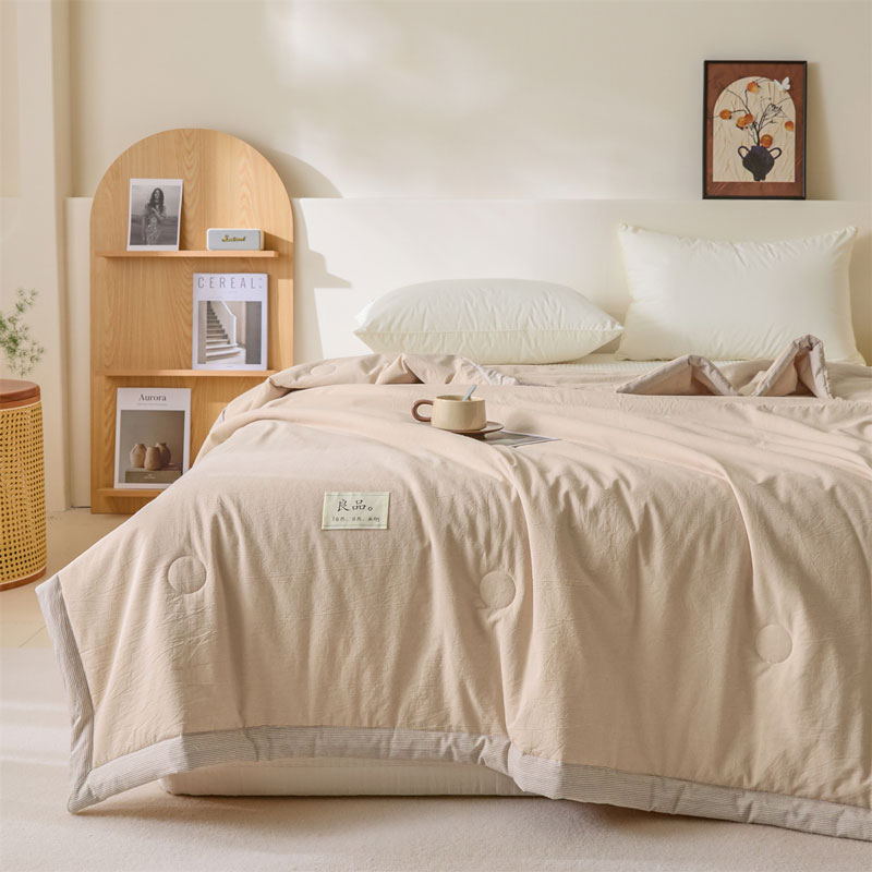百丽安娜纯色无印风亲肤大豆夏被-卡其