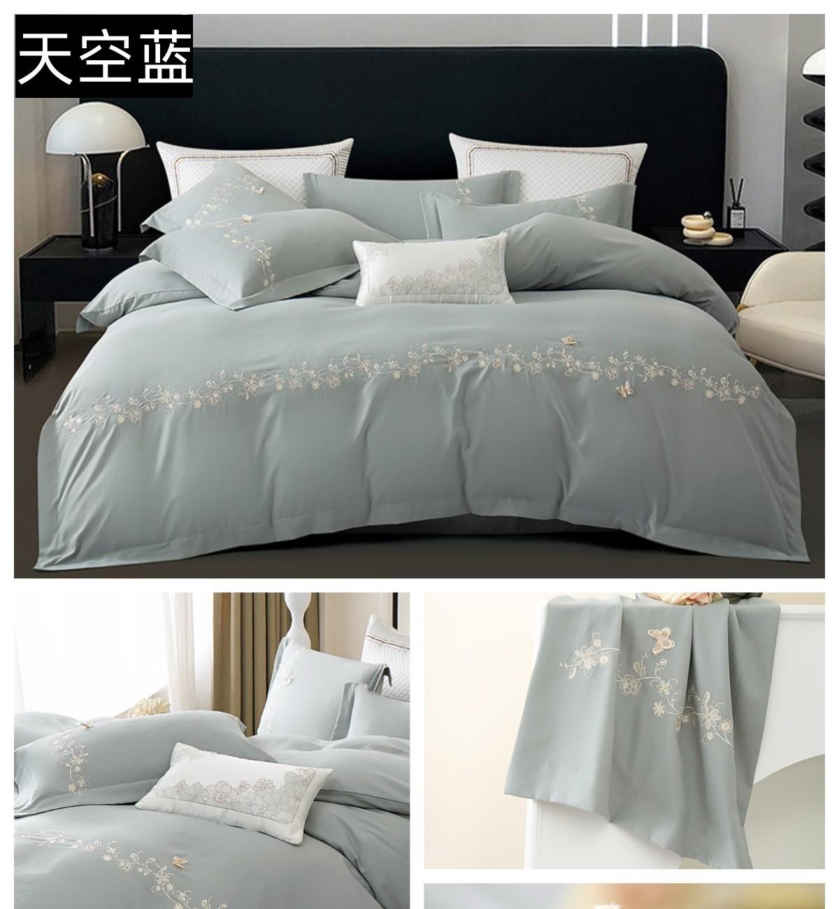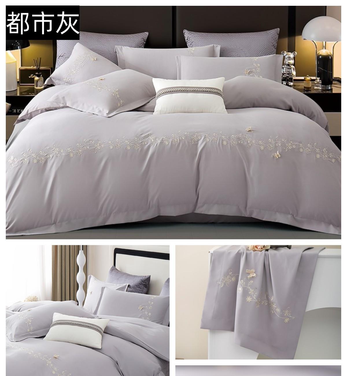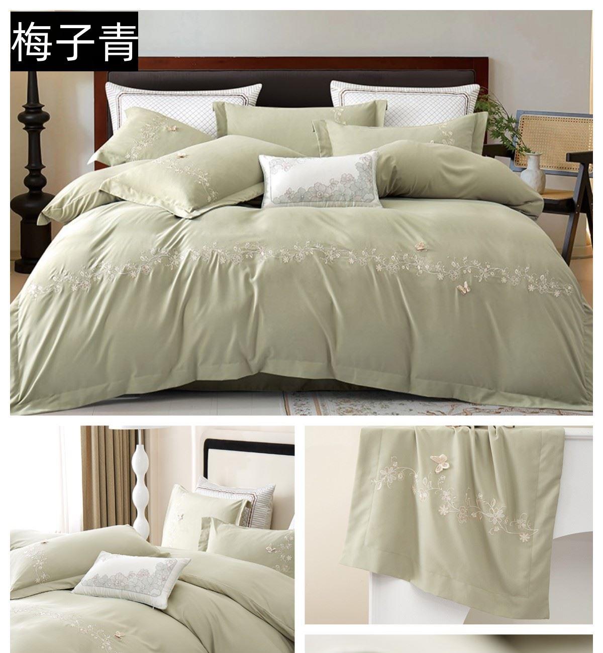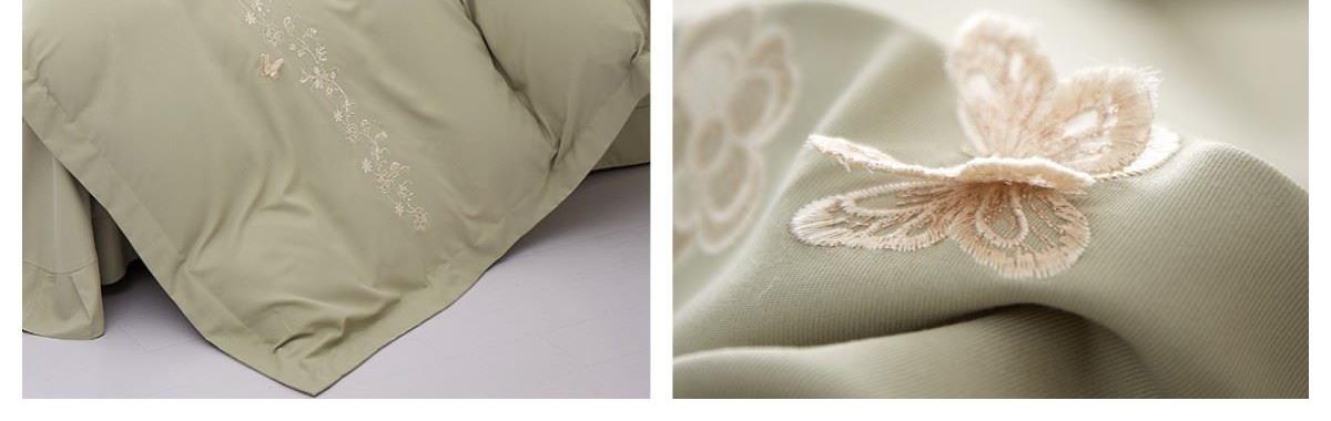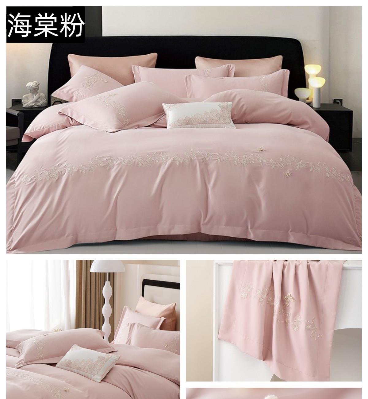 规格:床单250*270*1 被套200*230*1 枕套48*74*2 适用于1.5米/1.8米床 面料:双面加厚羊绒棉(聚酯纤维) 工艺:高精密刺绣 立体蝴蝶、枕套定位、整烫 花色:丁香紫/都市灰/海棠粉/卡其/梅子青/天空蓝 甄选双面羊绒面料,细腻柔软贴近肌肤,具有良好的透气吸湿性,裹上就有不想离开的依赖感。简约精美绣花设计,追求优雅品质,将浪漫尽数收藏。生活中我们要善于做减法,蝶影翩跹,浪漫风情。飞舞的蝴蝶与浪漫融合,仿佛置身于花海之中,与蝶共舞。