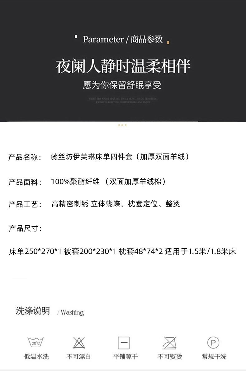 蕊丝坊家纺伊芙琳床单四件套(加厚双面羊绒) 蕊丝坊家纺伊芙琳床单四件套(加厚双面羊绒)