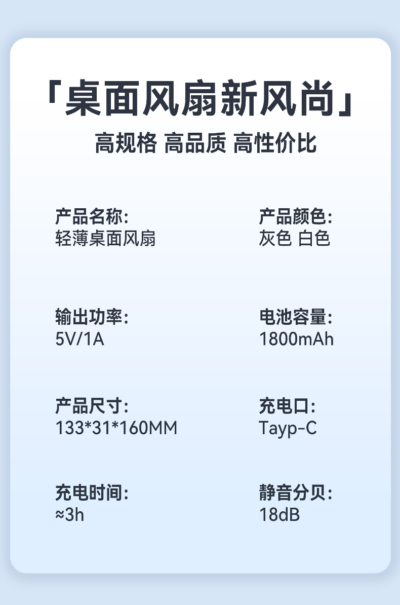 右心新款桌面风扇轻薄便携小风扇可挂可手提F02