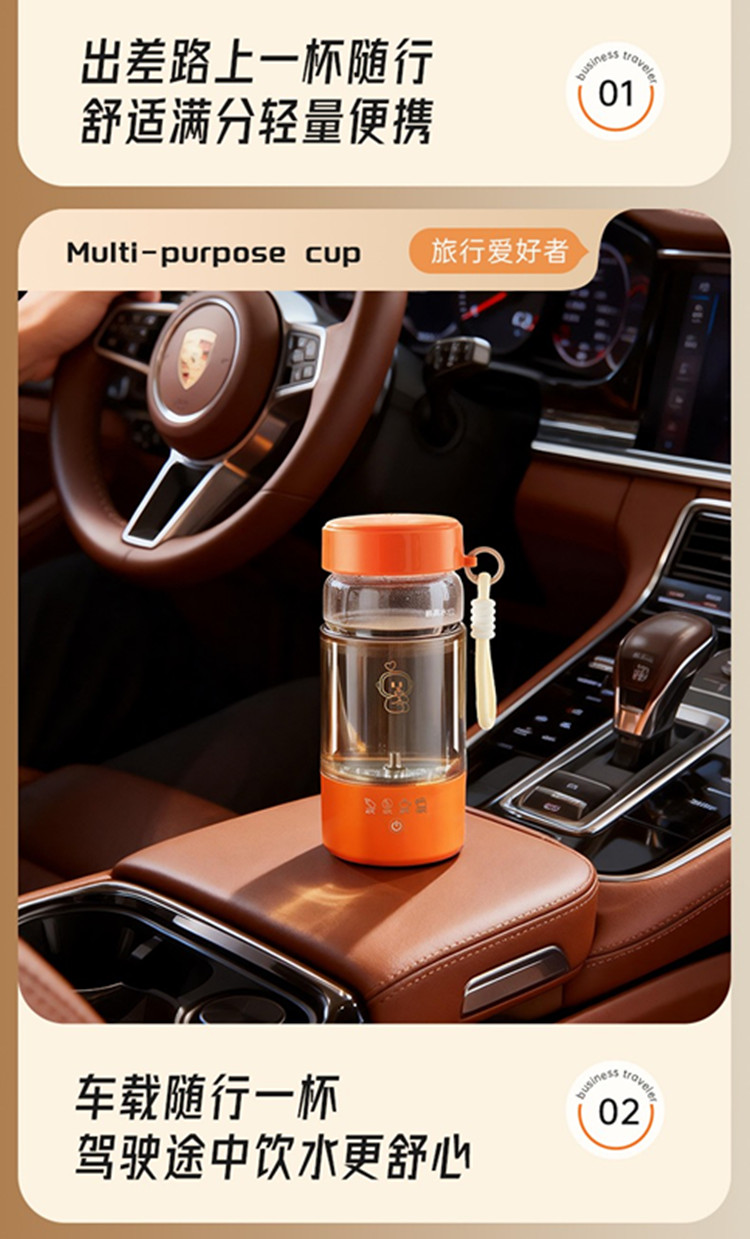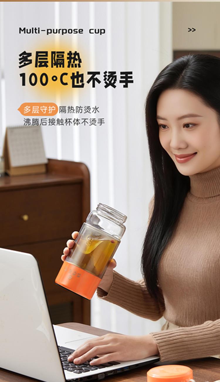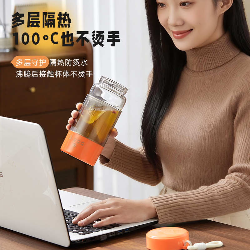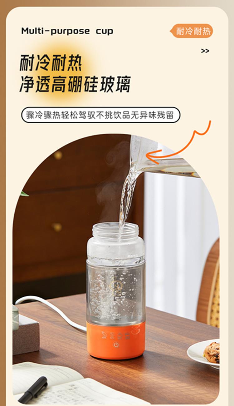 泉尔思便携式电热水杯(单杯)DSB-04DB玻璃内胆 礼品已成功加入PPT!