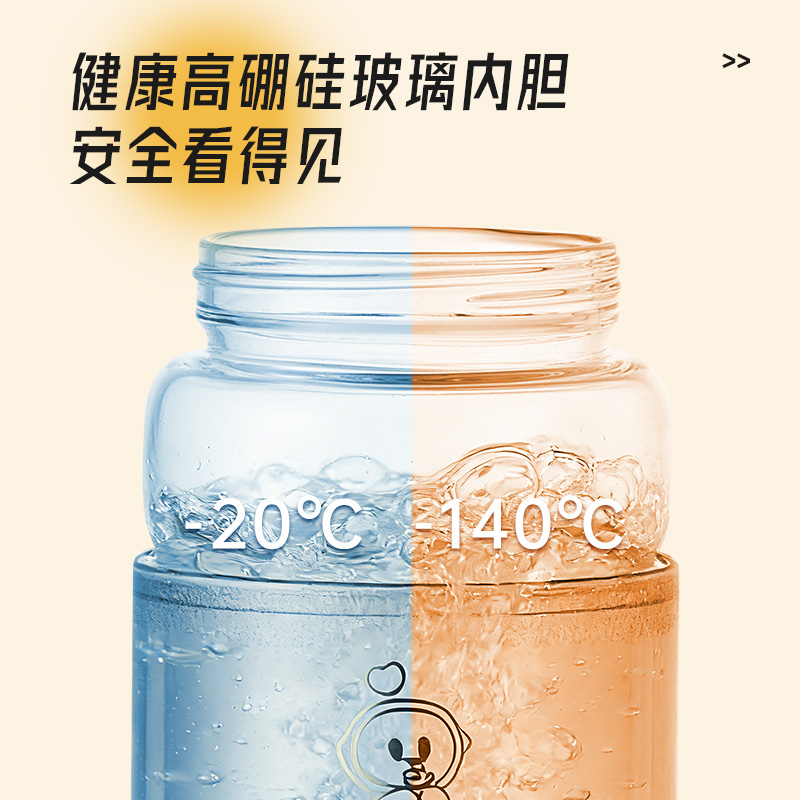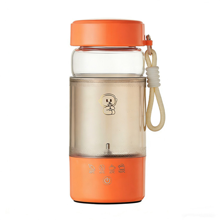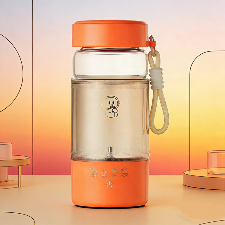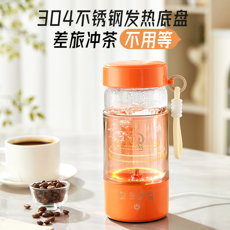 额定功率:300W 颜色:白色、橙色 主机容量:450ML 规格:电热水杯 产品款式:标配水杯单杯 包装清单:彩盒包装+水杯+电线 特色功能 1、450ML大容量,食品级304不锈钢发热盘,整杯0涂层。硅胶防水槽,安全水位标识。 2、双层中空高硼硅玻璃设计,抗酸耐碱,保温/防烫/降噪。 3、300W快速烧水,8分钟热水即享100℃,自动保温8小时。 4、复合型透气膜防爆盖,防漏安全保护关盖烧水,泄压透气,便携烧水更安全。 5、触摸控制4档温度数控调节,一键切换(热水壶/恒温杯/水杯)45/55/80/100℃ 6、IP专属定制,便携式随身装包,密封不漏,轻松携带。
