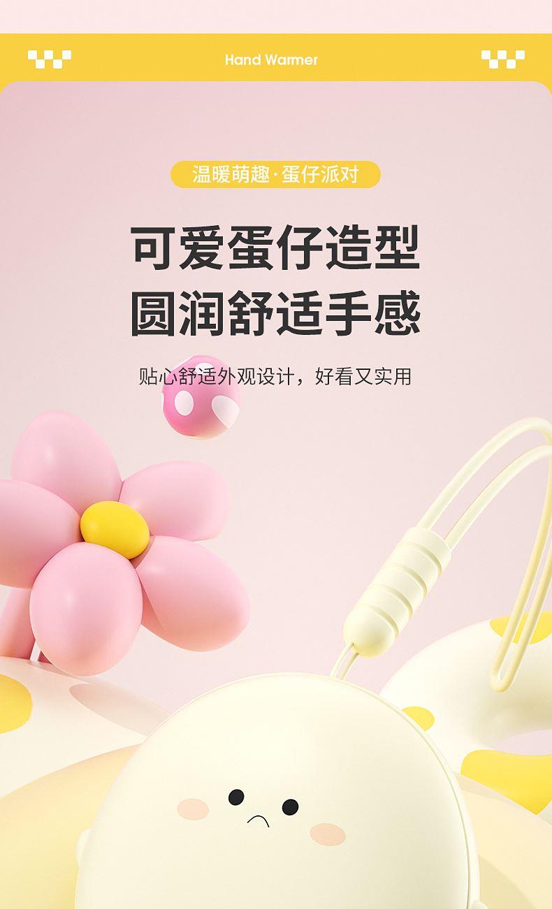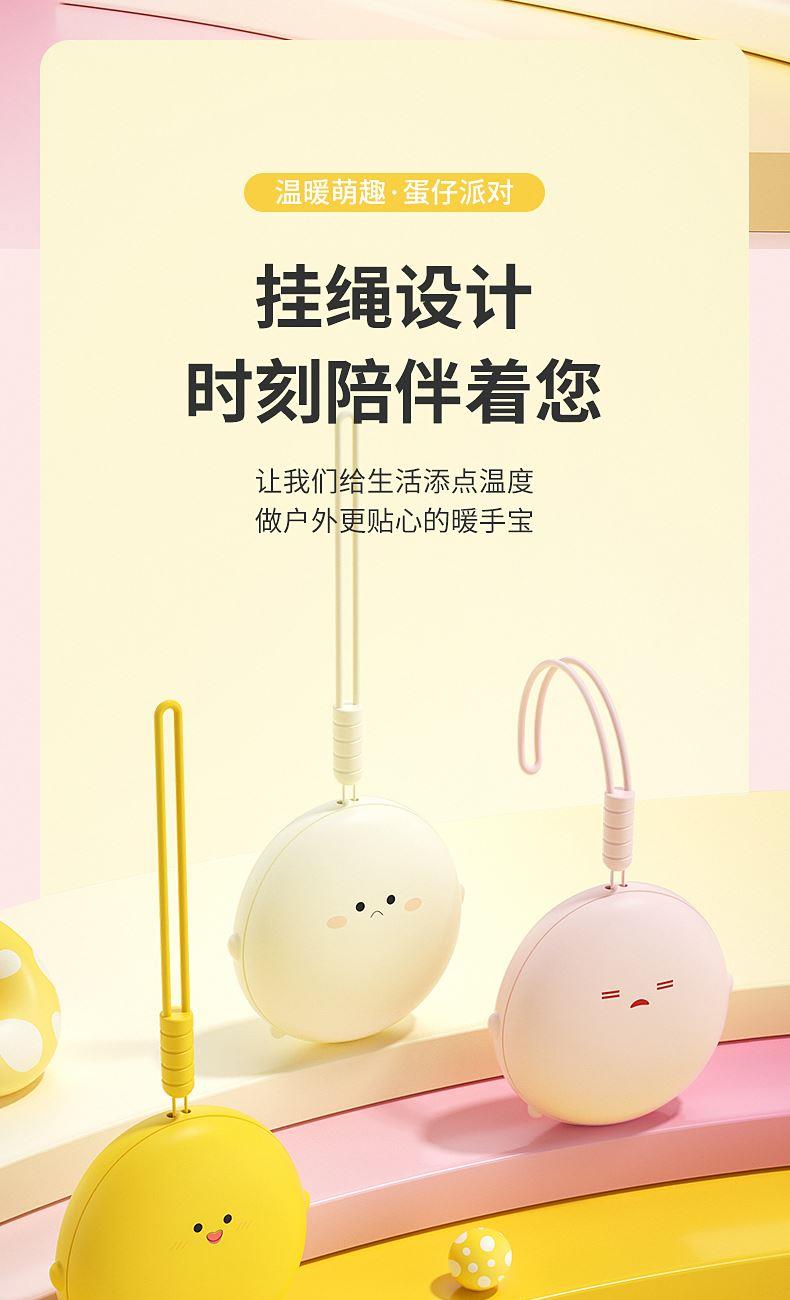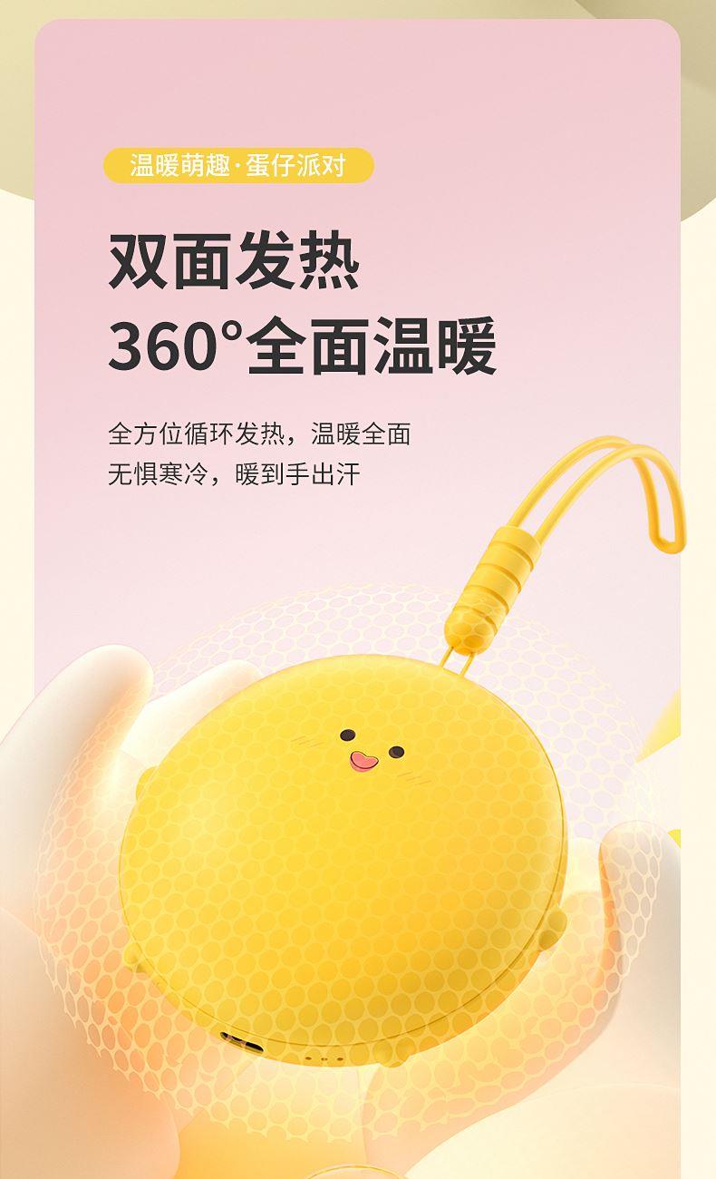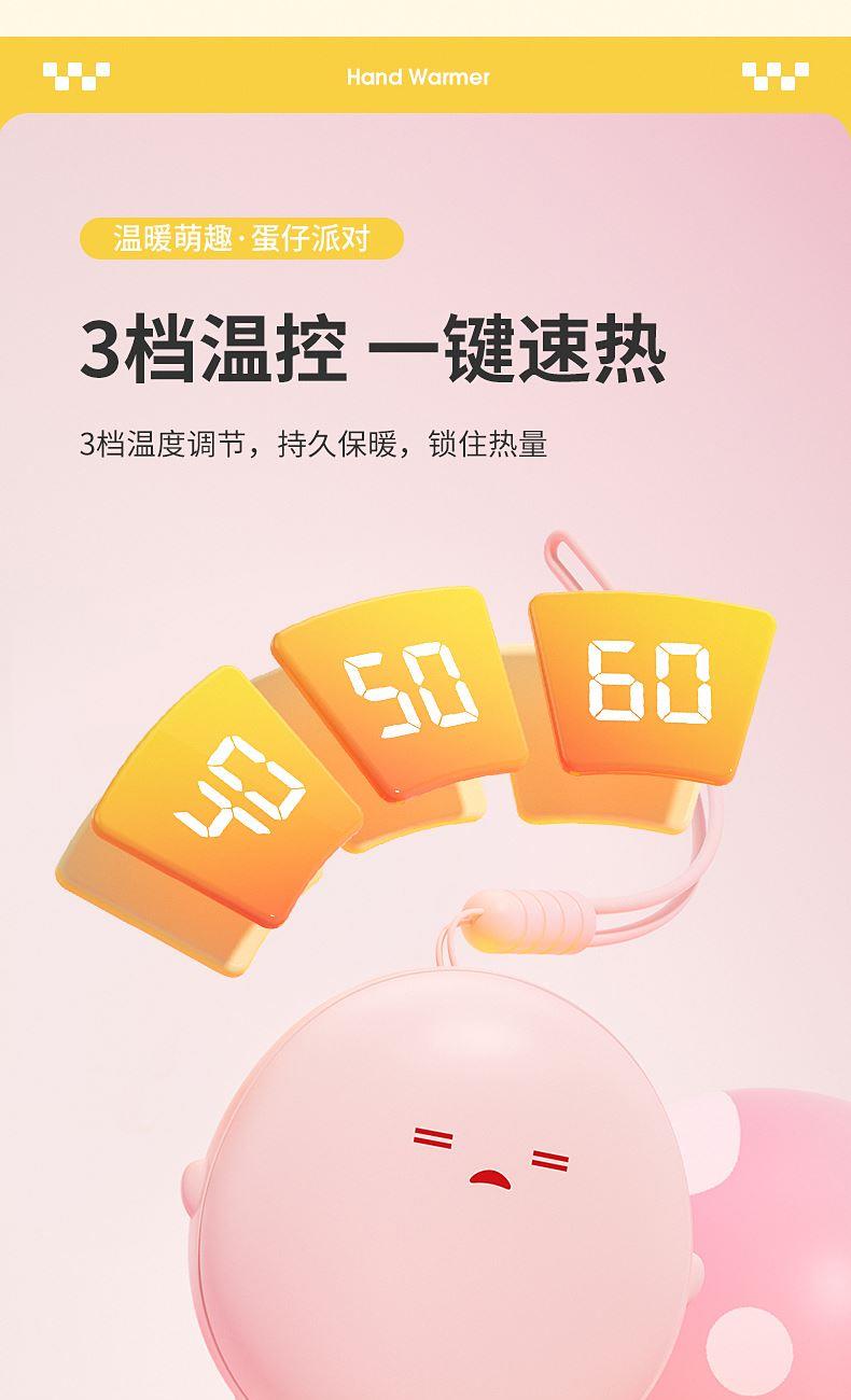蛋仔萌宠,暖心暖手 3600毫安实标容量 60°双面发热,360°温暖 三档温控调节,一键速热 强劲蓄电,持久温暖
