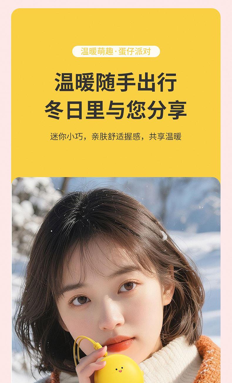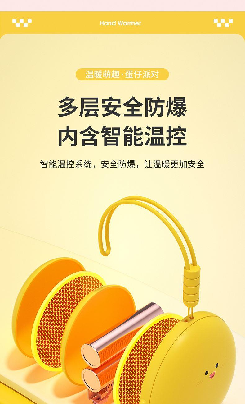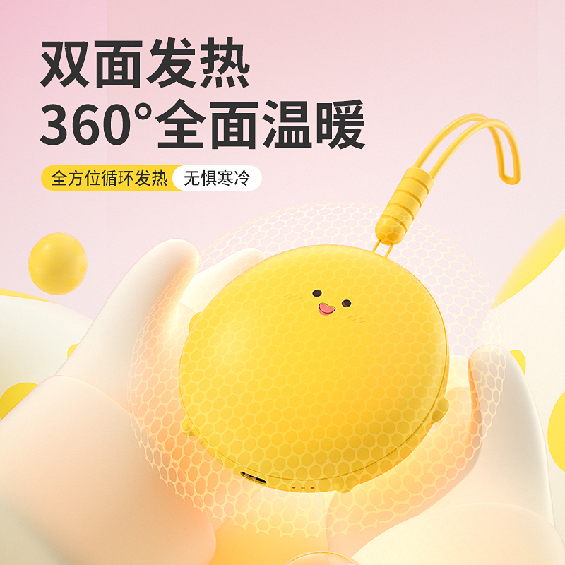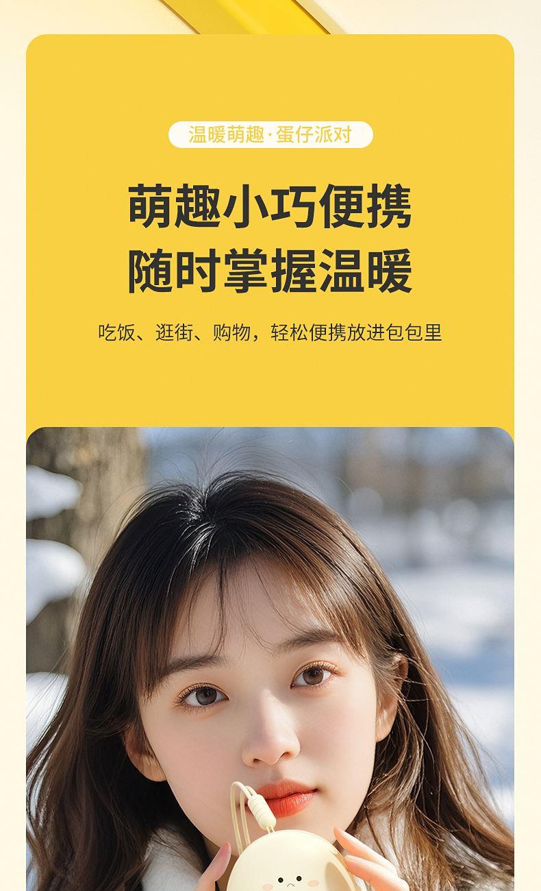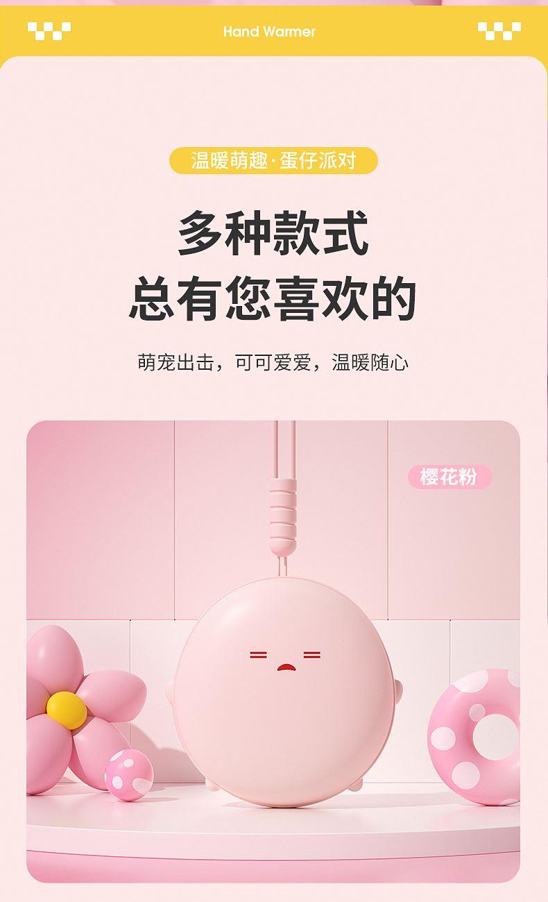 蛋仔萌宠,暖心暖手 3600毫安实标容量 60°双面发热,360°温暖 三档温控调节,一键速热 强劲蓄电,持久温暖