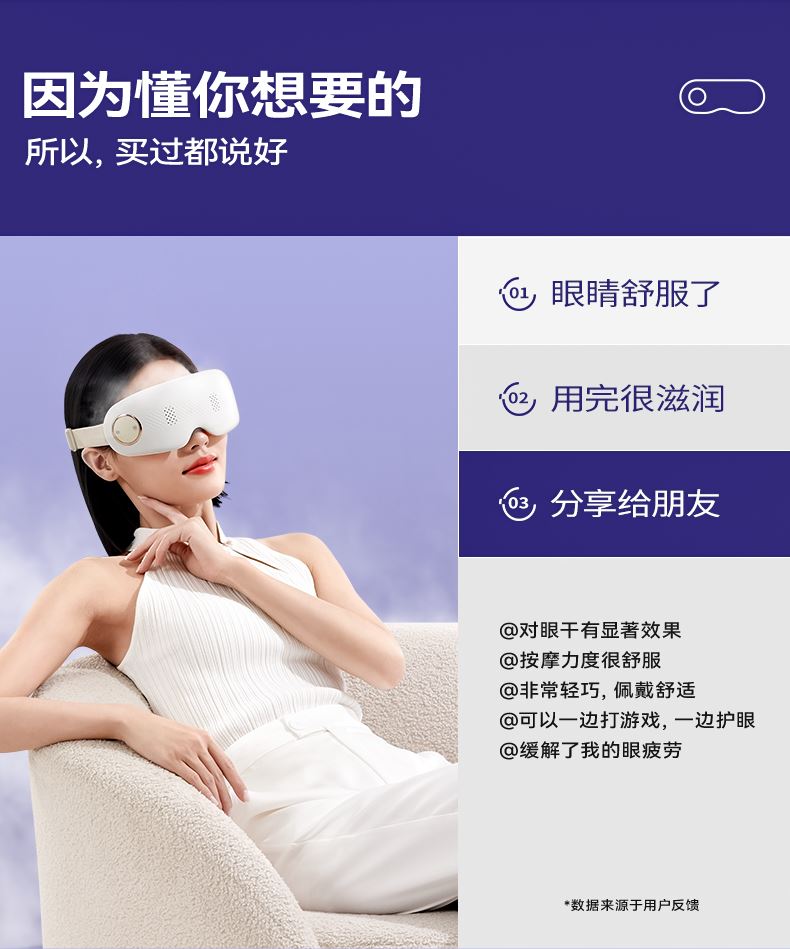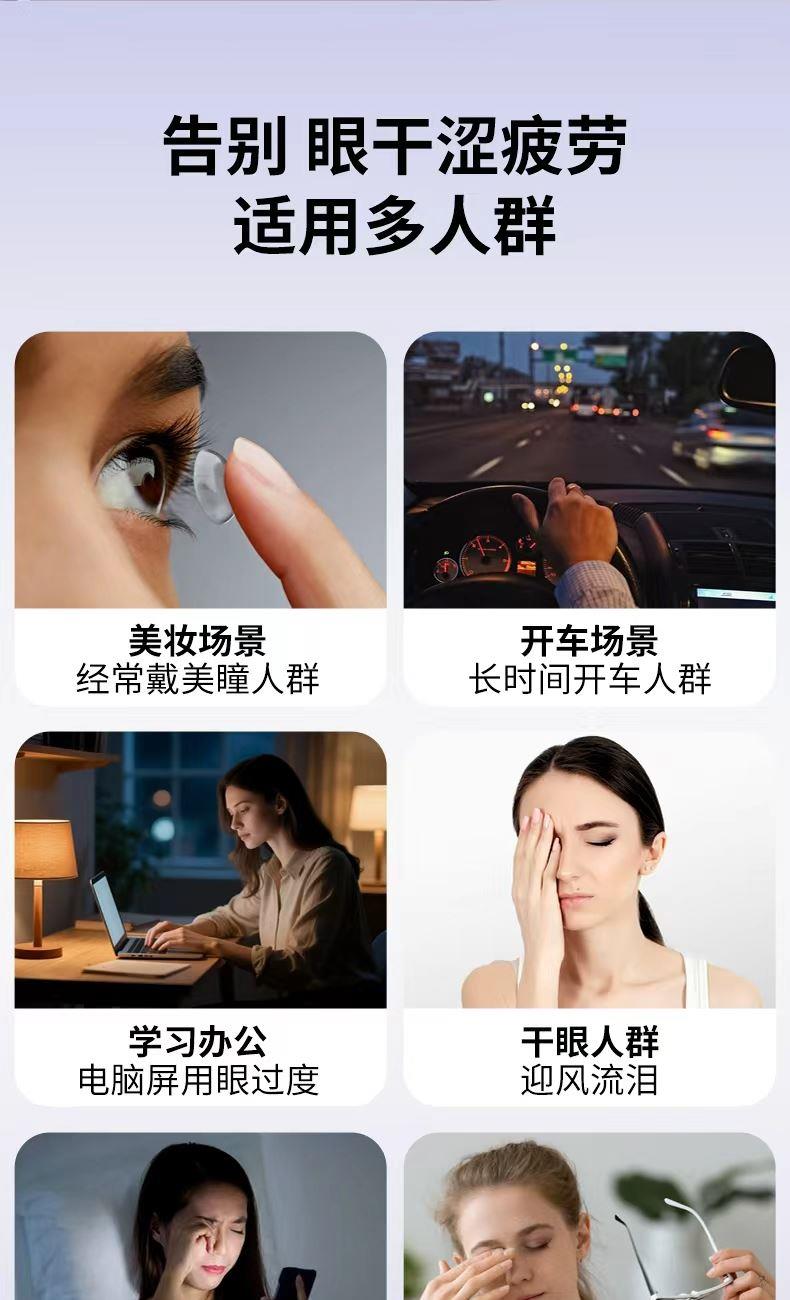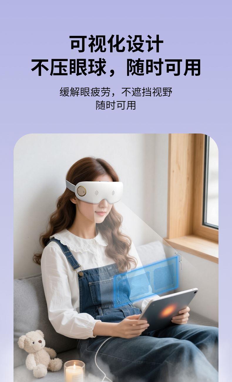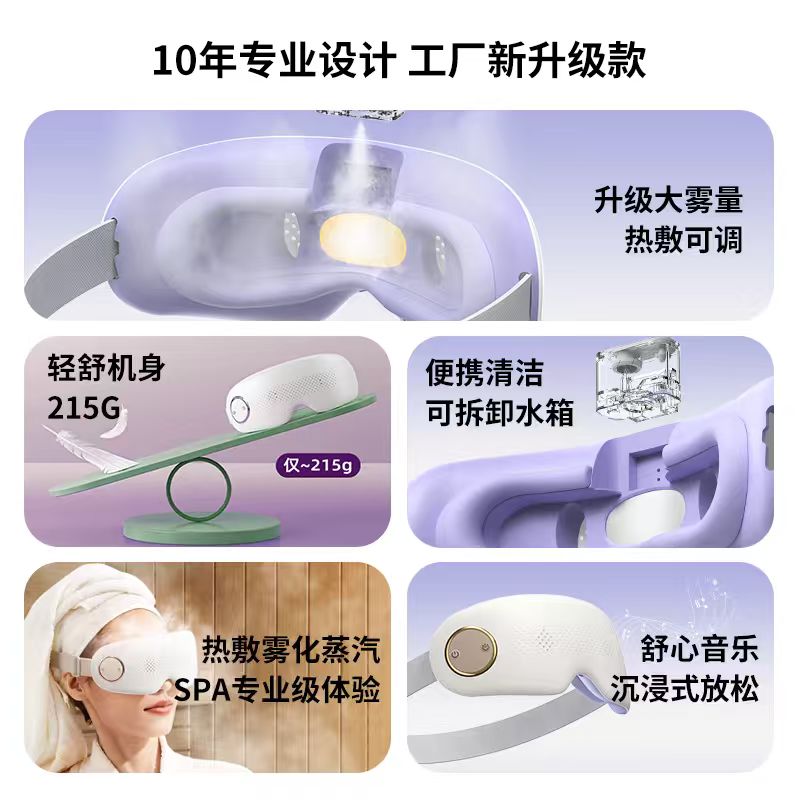产品材质:ABS+硅胶 雾化功能:持续雾化、间歇雾化 充电接口:Type-C 热敷功能:高温热敷、低温热敷 ✅ 分离式磁吸大水箱,可拆卸易清洗 磁吸快拆设计,加水、清洁超方便,不藏水垢不闷菌,润眼更卫生。 👀 可视化设计,边按摩边用眼 不挡视线,办公、看书、刷手机都能用,解放双眼,放松工作两不误。 ☁️ 热敷 + 雾化双效润眼,疲惫一扫空 温热蒸汽深层渗透,快速缓解眼干、眼涩、酸胀,给眼睛做沉浸式 SPA。