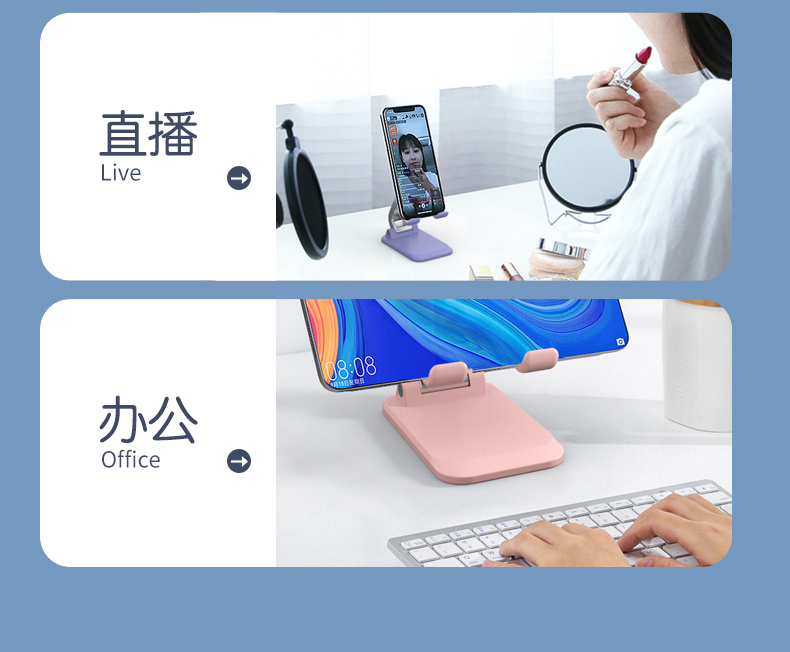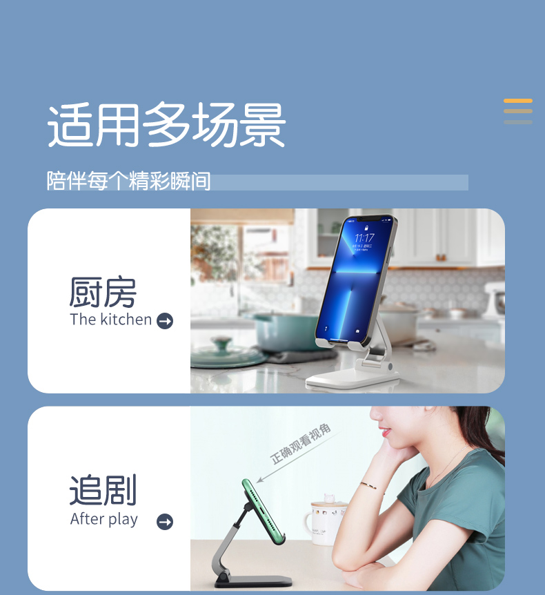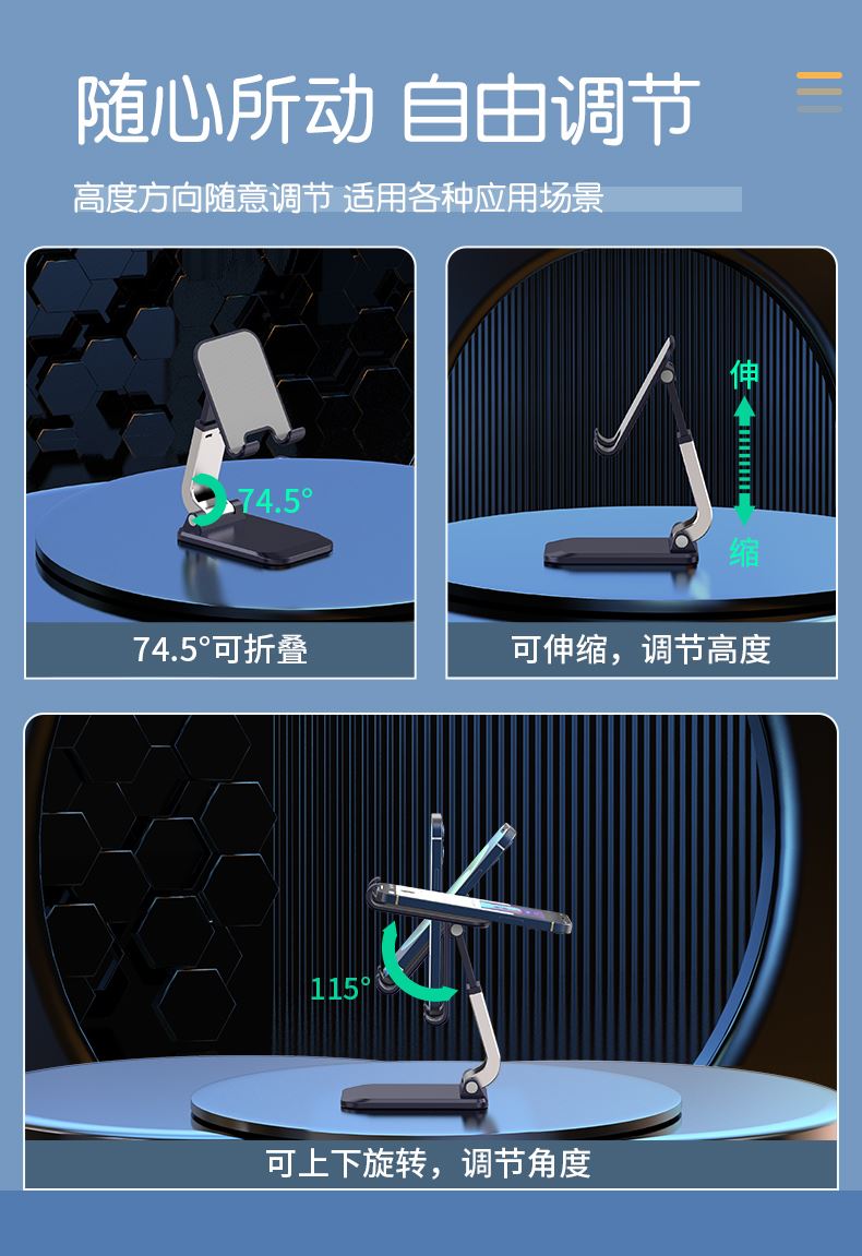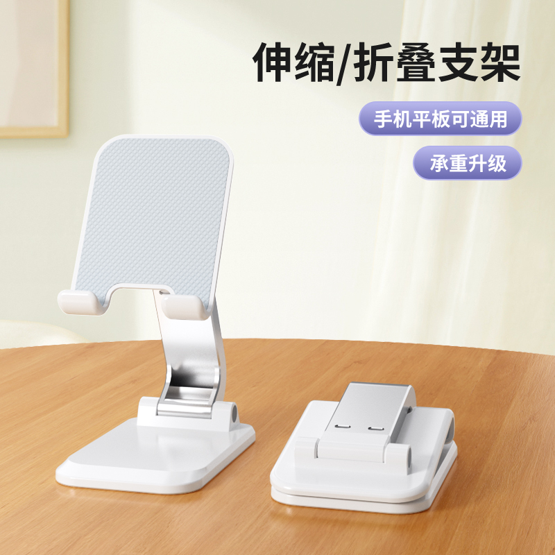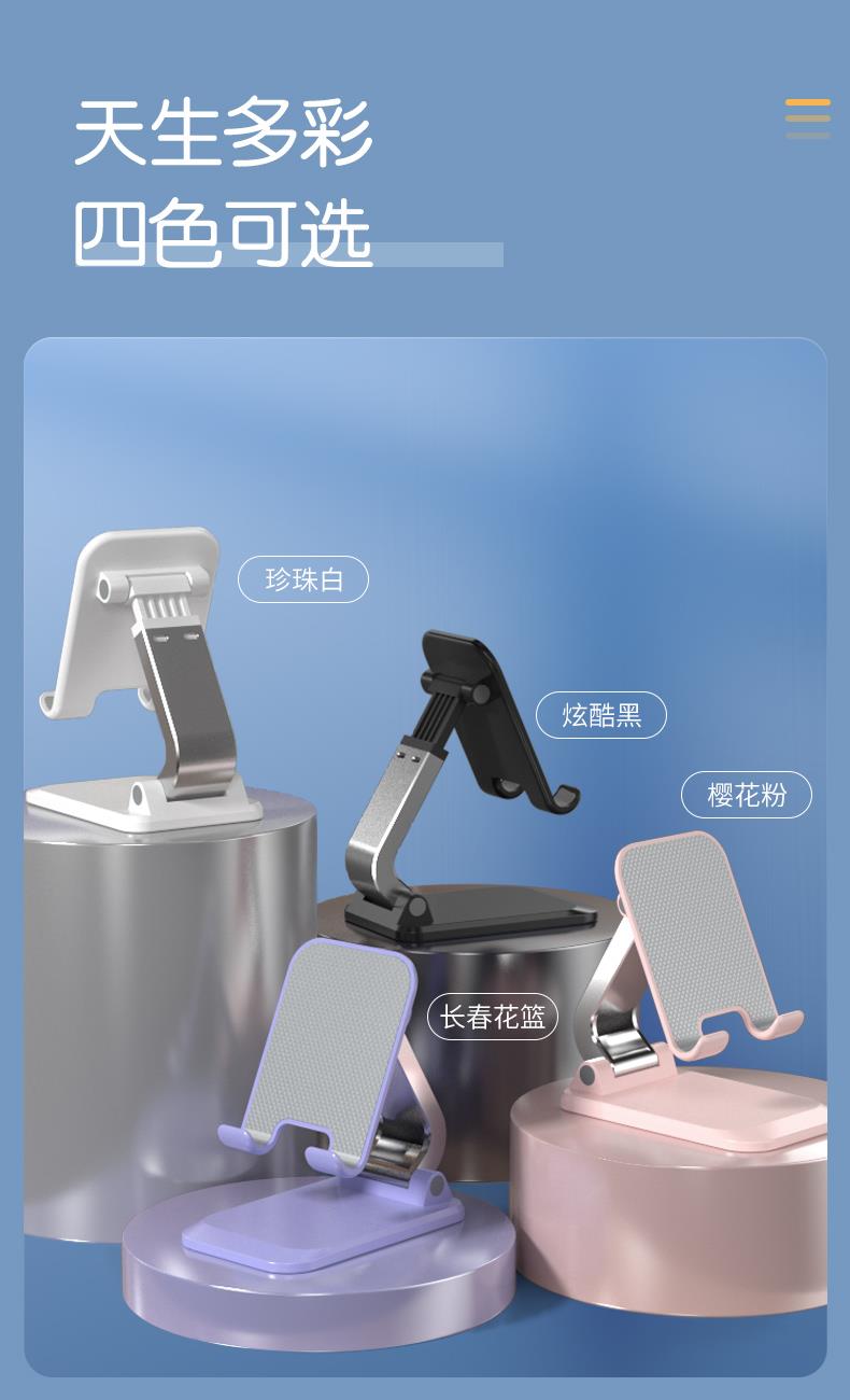 手机平板桌面支架Q7 型 号: Q7 产品尺寸 :110*70*38mm 包装尺寸 :115*74*42mm 产品净重 :128g 产品毛重 :138g 材质 :ABS+PC+硅胶+金属配重块 颜色 :黑色,白色,紫色,粉色 【功能特点】: 硅胶配重升级款更稳定可折叠可伸缩 90°角度调节ABS面板防滑条纹 手机、平板均可使用预留充电位,边看边充 手机平板追剧办公学习稳如泰山