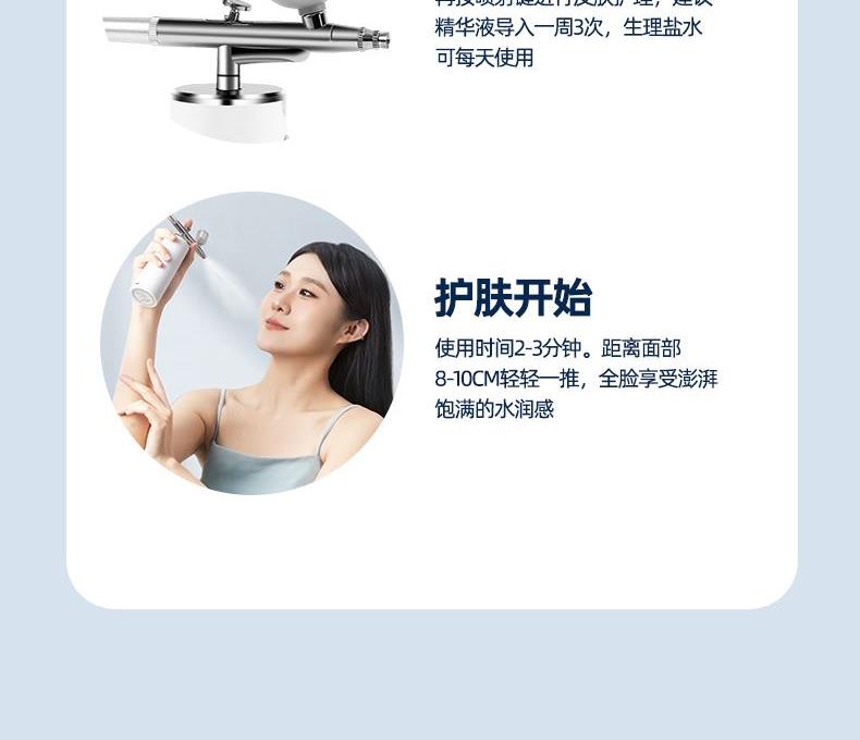 产品参数: 产品型号:CP-W2 额定电压:5V⎓ 额定功率:8W 电池容量:900mAh 商品条码 : 6972831860143 产品尺寸 : 48X145x150mm 包装尺寸:185x175X58mm 产品毛重 : 485g 包装清单:主机x1、充电线x1、容量杯x2、说明书x1 核心卖点: 1、 0.3mm纳米雾化喷射,精华深层吸收,满足肌肤补水需求 2、精致双喷壶,百变搭配,宅家SPA 3、高压注氧,绽现水润肌 4、提高肌肤免疫系统,随地即刻补水 5、TYPE-C充电口,随地为美丽续航