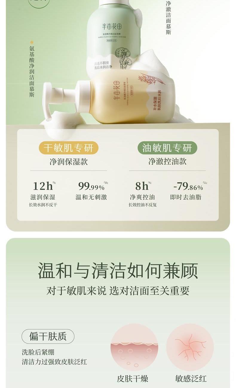半亩花田净润氨基酸洁面慕斯300g保湿