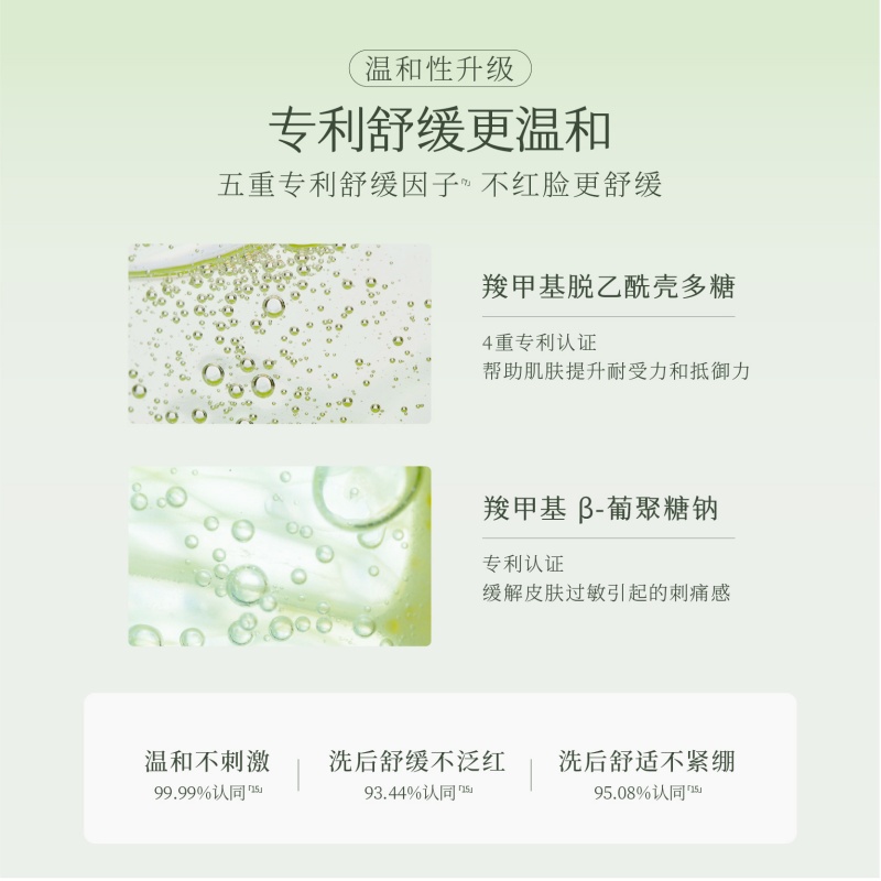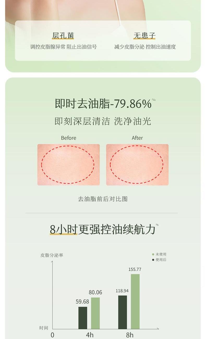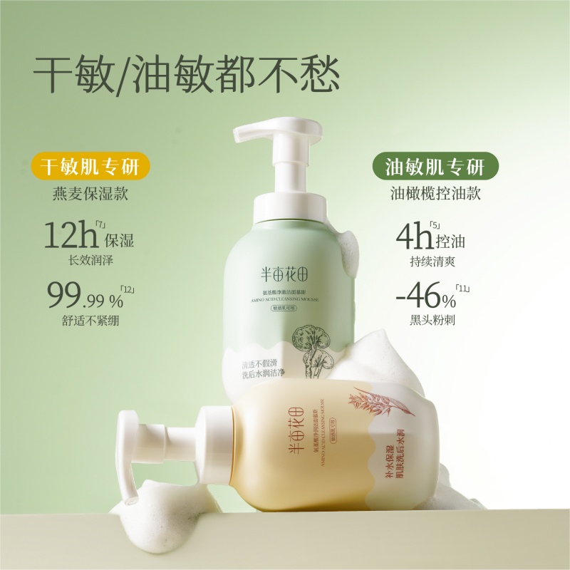1、油皮不油光,干皮更水润。 2、燕麦保湿款,洗后不拔干,水润保湿,舒缓肌肤