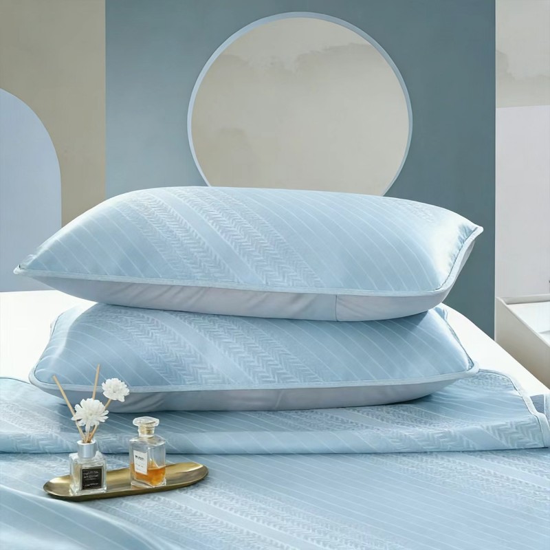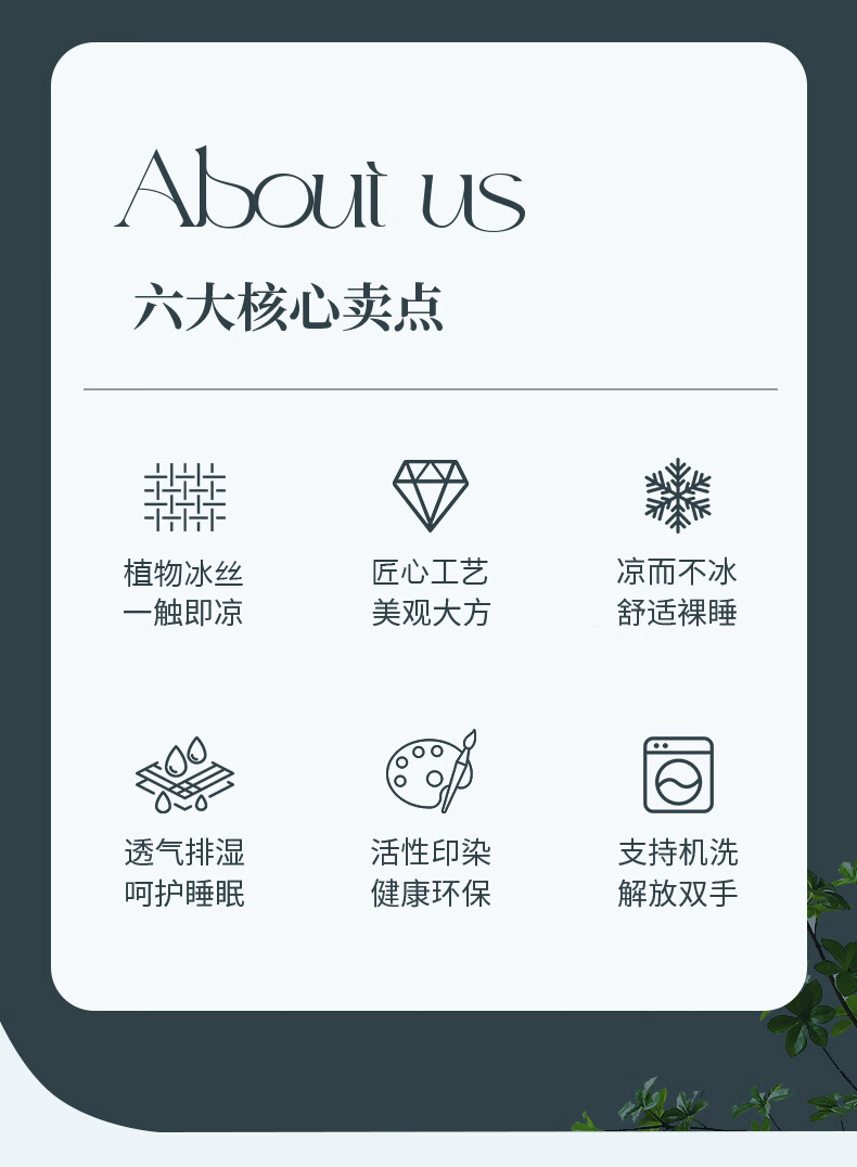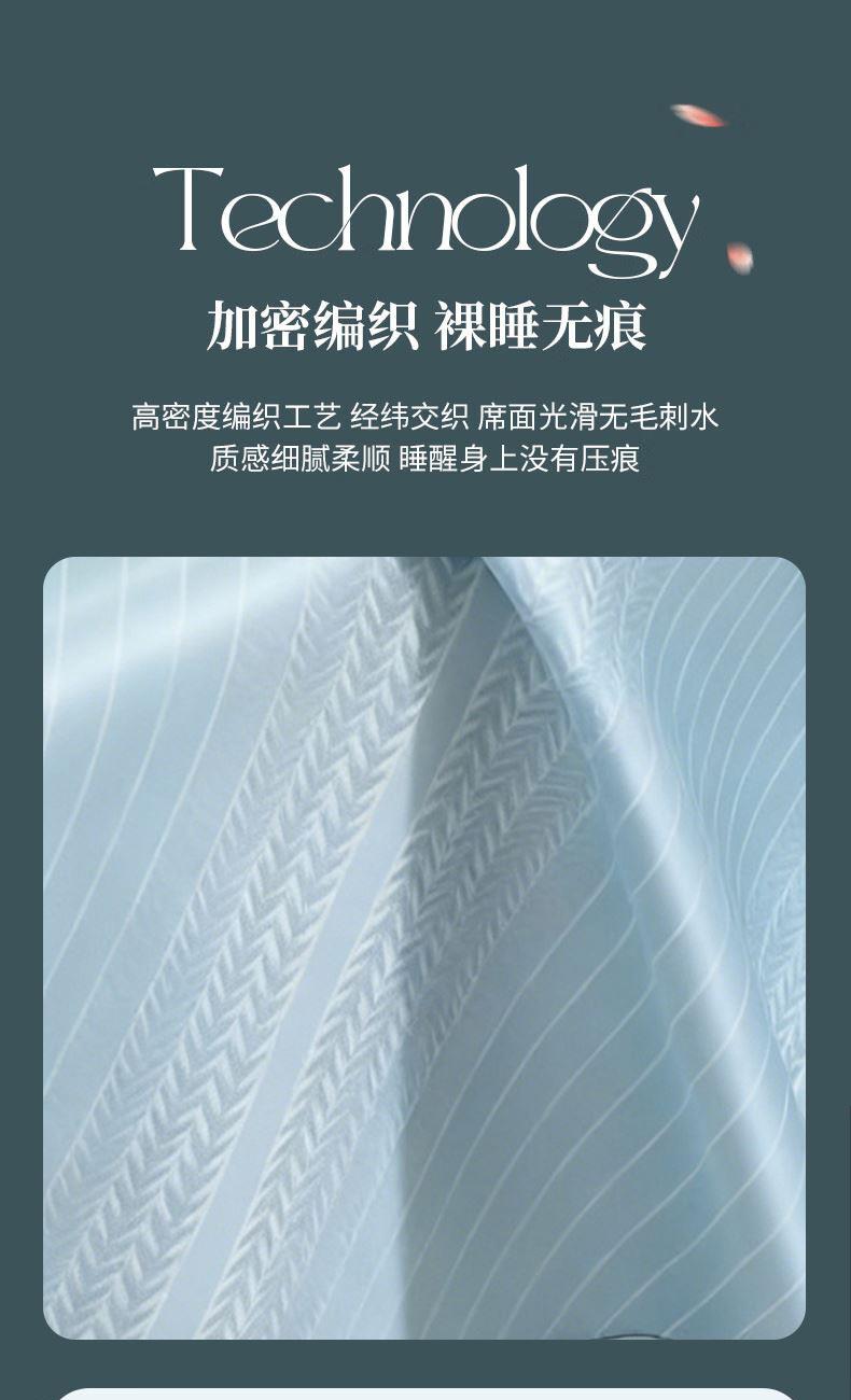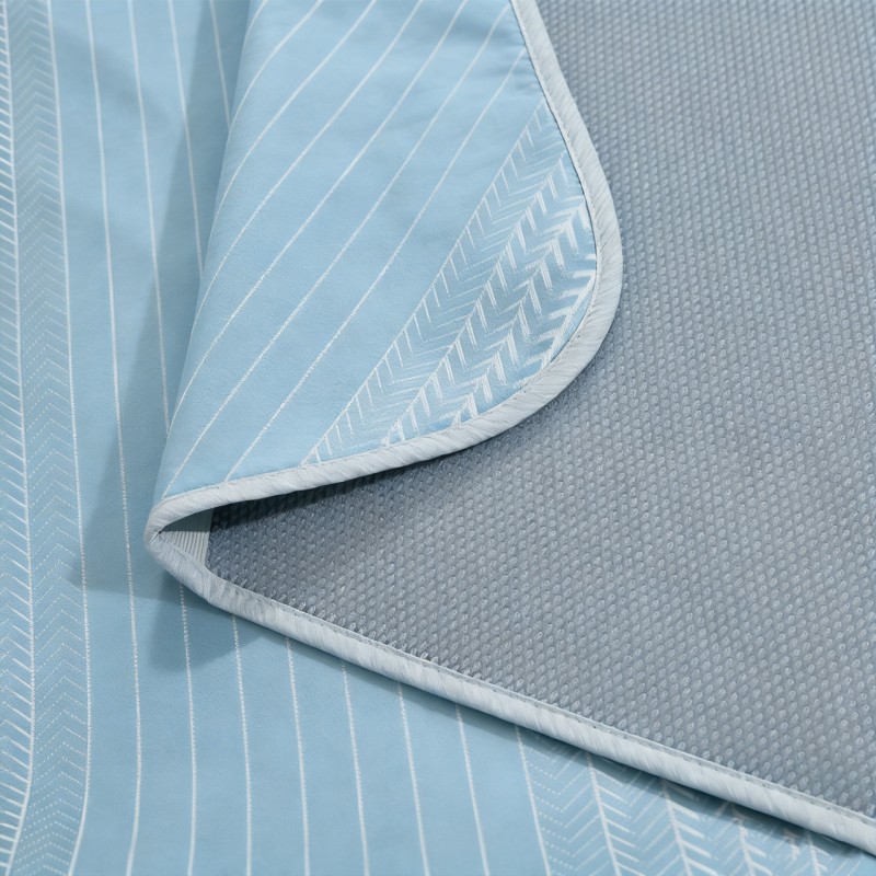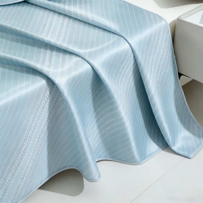 规格:180*200cm 枕套:48*74cm*2 面料:植物冰丝 复合料:华夫格 执行标准:Q/TDY 01-2016 安全类别:GB18401-2010 B类 1.萃取植物冰丝,自然清凉,凉而不冰,久睡不粘。 2.凉感冰丝纤维织物本身经过处理,可以破坏细菌的寄生环境,有效防止细菌滋生进入,切断它们的食物链,洁净卫生,适合裸睡。