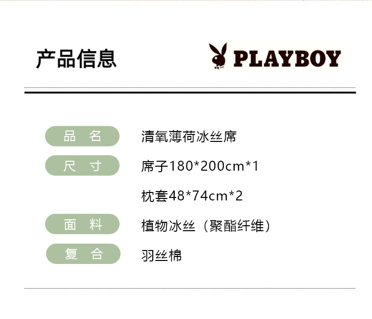 花花公子清氧薄荷冰丝席P-YL7753